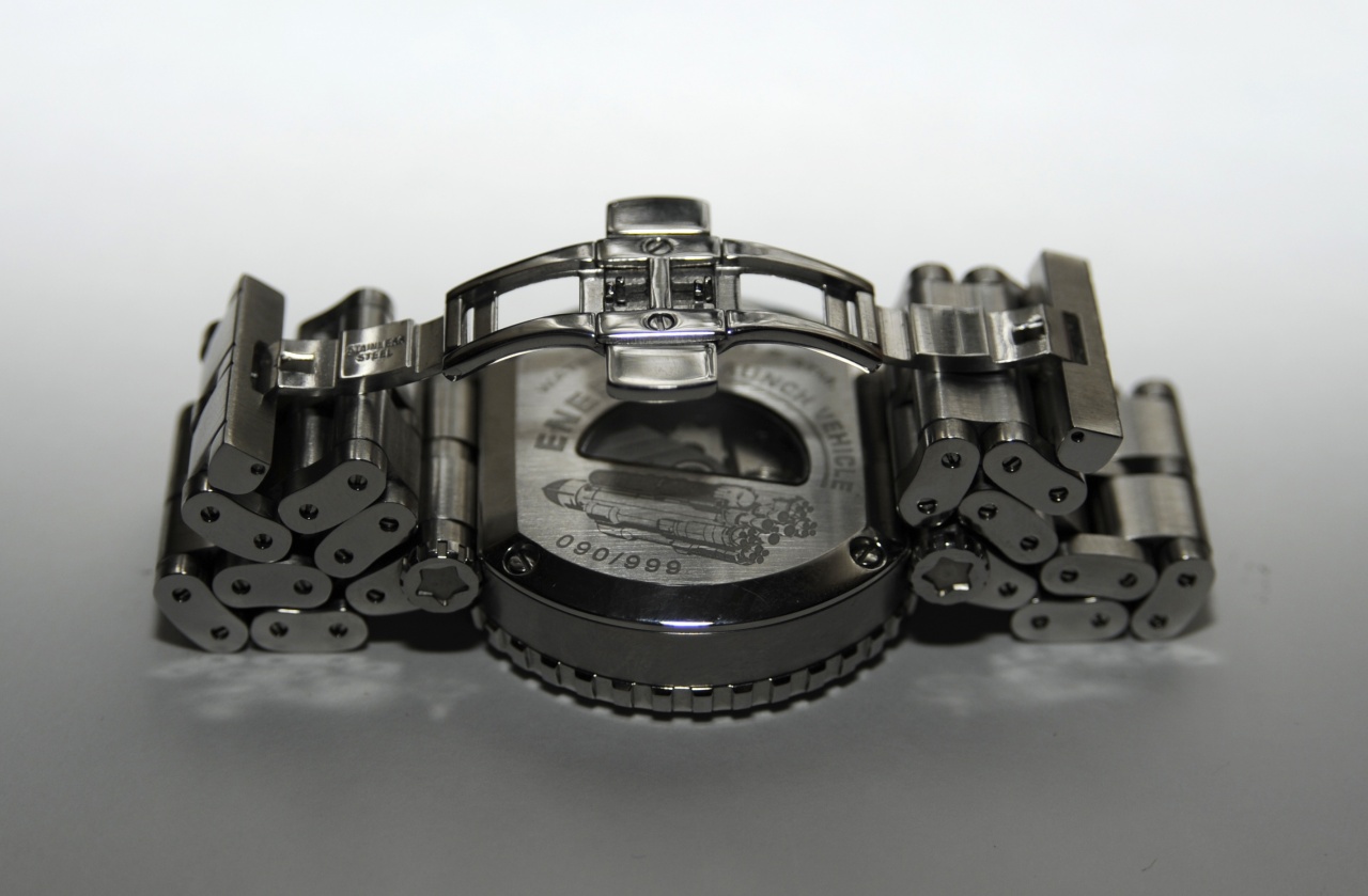 Браслет: Хорошо сделан, тяжелый, напоминает танковую гусеницу (усиливая общее впечатление.). Сатинирован, замок двойная бабочка, очень четкий. Сами звенья на винтах, разумеется цельнолитые. При носке чуть поскрипывает