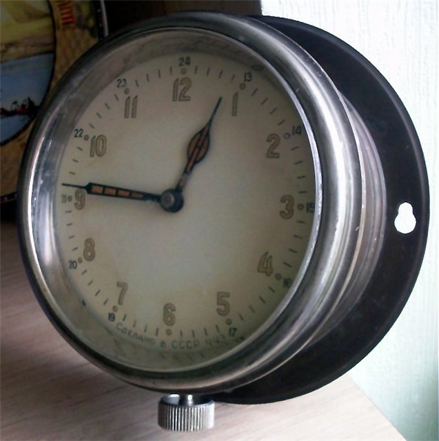 Механизм часов рабочий. Они идут и очень хорошо. Когда я их привёз с судна они на даче провисели 5 лет. Ходят отлично, только нужно не забывать заводить раз в 5-6 суток. Нуждается в ремонте петля на которой откидывается защитная стеклянная крышка. Но если крышку просто одеть, там справа есть защёлка. Она защёлкивается и прекрасно держит эту крышку. Не болтается и не отваливается.