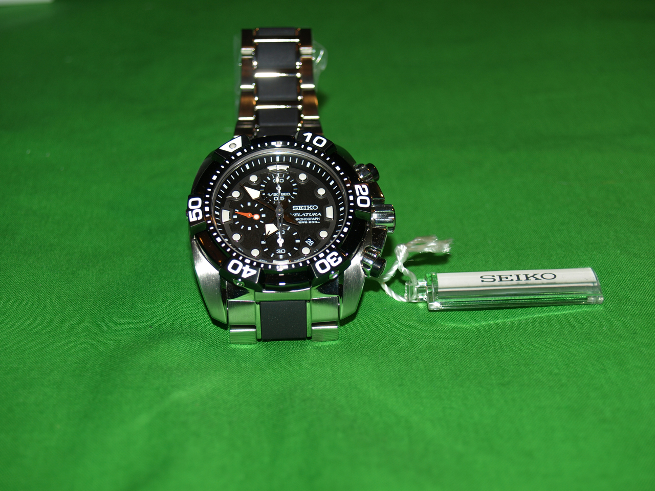 Представляю Вашему вниманию новый мужской дайвер производства Seiko: Velatura SNDA59P1; безумно красивые, крупные часы, с настоящим дайверским хронографом, рассчитанные на погружение с аквалангом (200 м), с вставками с покрытием нитридом титана. Довелось мне вчера подержать в руках легендарный SBCM023, последний новый во всей Японии (а теперь уже - в России), если верить Чино... Так вот, эта модель - достойный продолжатель традиций, и стоит каждой копейки своей цены.