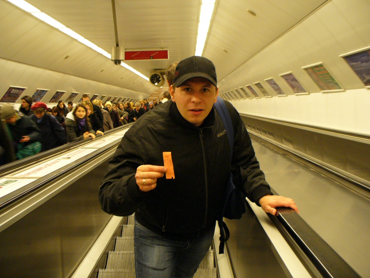 Ну я на ней и уезжал ,прикольная такая, спустился в переход и там Метро, и продают билеты с рук контролеры, билеты то же как в Праге, мало того что купил так еще и нужно пробить, перед тем как сесть, так как в вагонах бдит кондуктор
