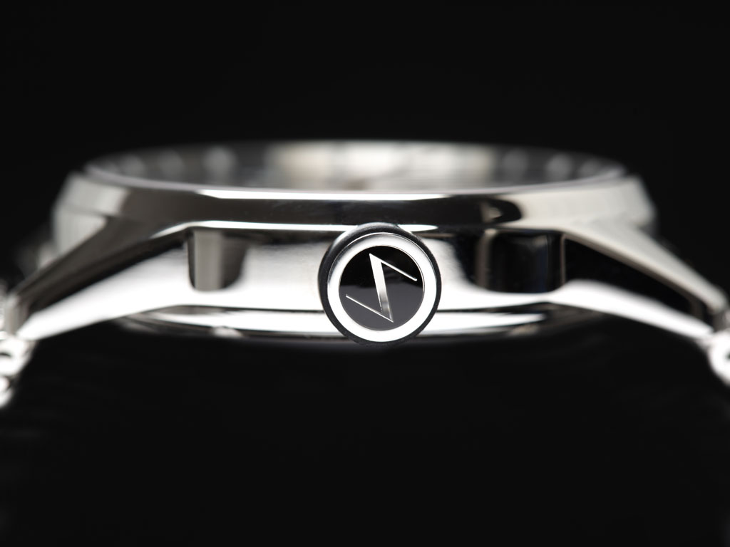 Поставляется на браслете миланского плетения из нержавеющей стали (шириной 24 мм), а также с черным кожаным ремешком, доступным в качестве опции.