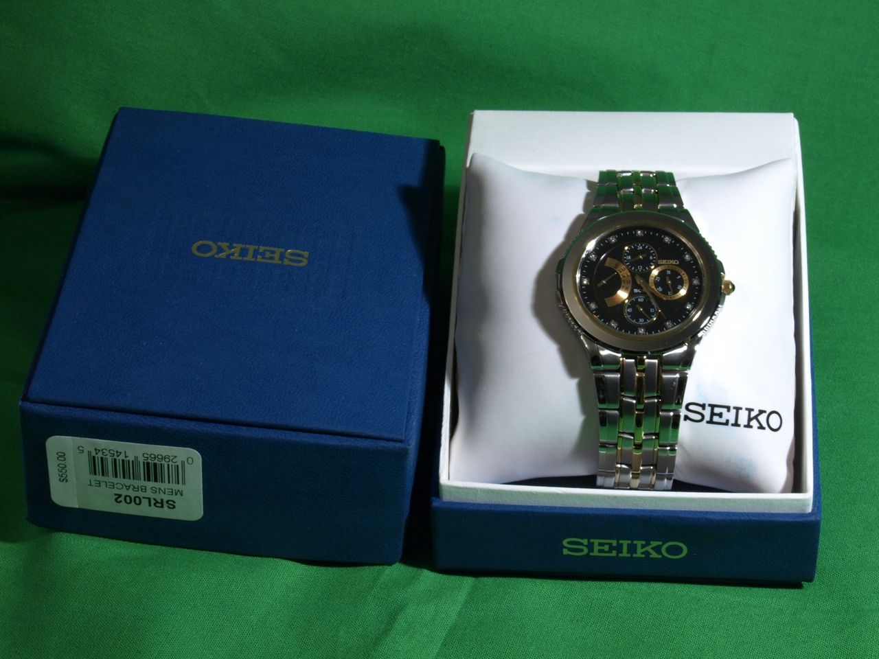 Представляю Вашему вниманию модель для американского рынка: Seiko Le Grand Sport Diamond SRL002, с ретроградным указателем дня недели, позолоченным безелем и с бриллиантами по циферблату.