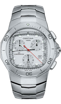 Модель Certina с двойным секундомером (две секундные стрелки) на очень массивном браслете