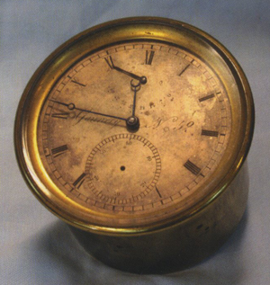Татьяна Фокина, фото: Екатерина Куликова Хронометры суть те же часы - только сделанные самым тщательным образом, со всеми предосторожностями, указанными наукой. В настоящее время устройство их доведено до высшей степени совершенства». Дополнение к календарю «Петербург» за 1870 год. В истории мирового часового искусства особое место занимает создание морского хронометра - прибора, хранящего точное время, необходимого для определения географической долготы в открытом море. Несколько поколений изобретателей конструировали и совершенствовали хронометрическое устройство, незаменимое для мореплавателей. Задача была столь актуальна, что к ее разрешению были подключены не только ученые, но и государственные умы. Дело в том, что «задачу долгот» до начала XVIII века многие считали совершенно неразрешимой и ставили ее в один ряд с такими математическими проблемами, как квадратура круга или теорема Ферма. Даже наш просвещенный император Петр I в одном из документов писал: «Я нимало не хулю алхимиста, ищущего превращать металлы в золото, механика, старающегося сыскать вечное движение, и математика, домогающегося узнавать долготу места для того, что, изыскивая чрезвычайное, внезапно обретают многие побочные полезные вещи». Между тем, еще в 1510 году испанец Санто Крус предложил очень простой способ для решения этой проблемы, названный «метод перевозки часов». Почти три века лучшие умы человечества работали сначала над созданием, а потом над совершенствованием часов для мореплавателей, попутно сконструировав множество часов и приборов времени для других целей как бытового, так и специального назначения. Если бы не была поставлена задача с помощью часов определять долготу местности - часовое дело еще долго бы оставалось на достаточно низком уровне. Но в XVI веке, поскольку точных часов еще не было, ученые испытывали и другие методы определения долготы. Многие из предложений основывались на астрономических наблюдениях и вычислениях положения Луны, звезд, спутников Юпитера, солнечных и лунных затмений. Например, Иоганн Вернер из Нюрнберга в 1514 году разработал метод лунных расстояний. Для наблюдения за Луной он изобрел специальный инструмент - поперечный жезл. Метод основан на том, что в разных частях земного шара в одно и то же время расстояние между Луной и одной из опорных звезд, расположенных вблизи эклиптики, будет различным. Существовали астрономические таблицы и альманахи положения звезд и Луны для пунктов с известной географической долготой. Поэтому, определив лунное расстояние неизвестного пункта и сравнив его с известным, можно определить разность долгот между наблюдательным пунктом и местом, для которого был составлен альманах. Другой способ определения долготы был предложен Галилео Галилеем. Он первый открыл четыре спутника Юпитера, которые при наблюдениях с Земли появлялись и исчезали в один и тот же момент для любого наблюдателя, в какой бы точке земной поверхности он ни находился. Галилей понял, что это самые совершенные небесные часы, которыми, если затмения будут заранее предвычис-лены, можно воспользоваться для определения долготы. Метод Галилея хорош и тем, что затмения юпитерианских спутников происходят часто: один - два раза за ночь. В 161 б году в надежде выиграть «долготный приз», Галилей предложил свой метод Ис