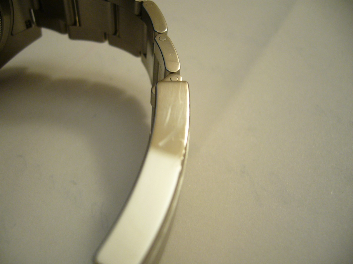 Место царапин - внешняя поверхность кромки застежки браслета (см. фото), происхождение царапин пока не установил, подозреваю, что задеваю что-то при работе за компьютером в офисе. Царапины достаточно глубокие, кромка на ощупь даже кажется щербатой.