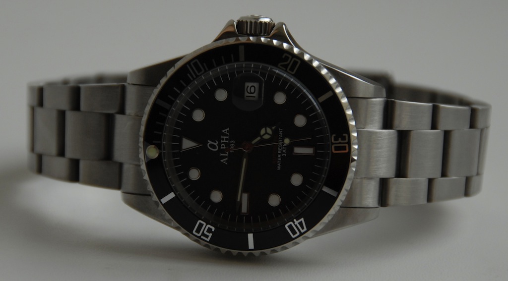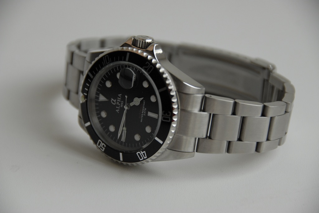 Часы Alpha в стиле Субмаринер, черный безель и циферблат.