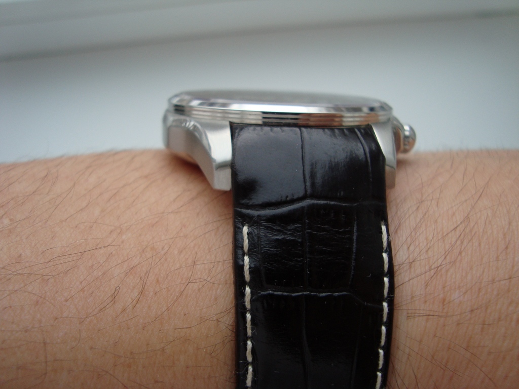 о самих часах. В часах стоит механизм 46H (EY); 23 камня; автоподзавод (ручного подзавода и стоп-секунды нет); плоское сапфировое стекло (какое стекло на задней крышке не знаю); водозащита 100 метров; точность хода, заявленная производителем +25/-15 сек/сутки. Функции - отображение часов, минут, секунд, дата, индикатор запаса хода, мировое время GMT в 24 часовых поясах (по городам). Кожаный глянцевый ремешок чёрного цвета, стилизованный под кожу крокодила. Застёжка "бабочка", что очень удобно.