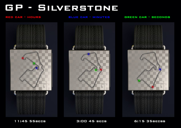 На сайте TokyoFlash появился новый концепт оригинальных наручных часов "GP race", разработанный дизайнером Питером (Peter) из Великобритании. Они предназначены для любителей автогонок и, прежде всего - Формулы 1, поскольку обеспечивают индикацию времени в "автогоночном" формате.