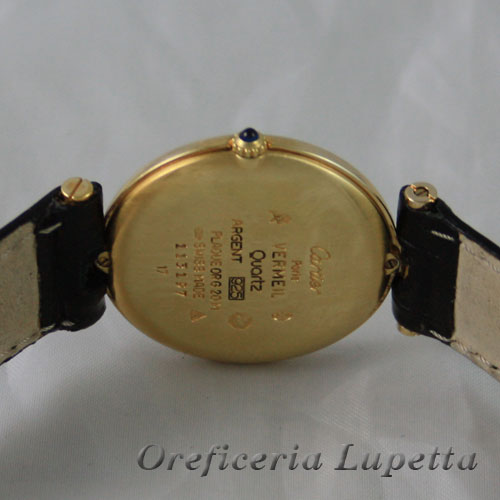 Где то с конца 70-х Картье использует вермель (плакирование золотом серебра 800-й или 925-й пробы). Толщина покрытия порядка 20 микрон. В линии Мust, в часах (женских) Вермель, на цифере - отражение легендарной версии Тринити, золотые линии 3-х цветов (желтого, розового, белого).