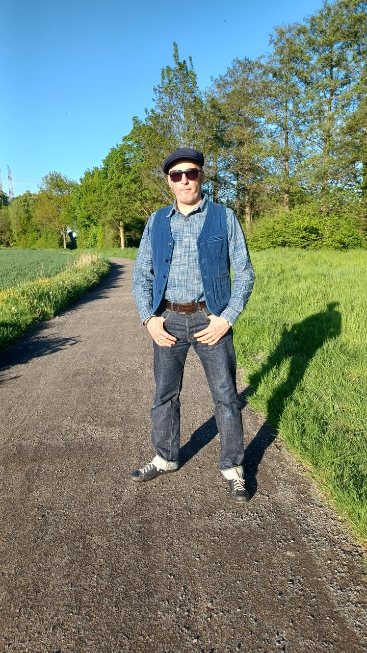 TCB Jacket 10,7oz natural indigo, коллаборация с Viktor Fredbäck + TCB20+John Lofgren champion sneakers