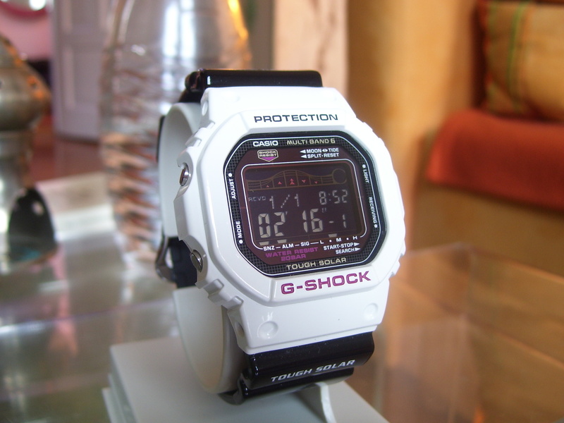 владею шоками Casio DW-5600EH-7E - белый цвет, с конца декабря 2009 года, на данный момент - ремешок 2 места затертости, слезло белое покрытие, + 4 места на самом модуле по торцам, та же ситуация, затертости со сходом белого покрытия. Данные часы эксплуатируются аккуратно.