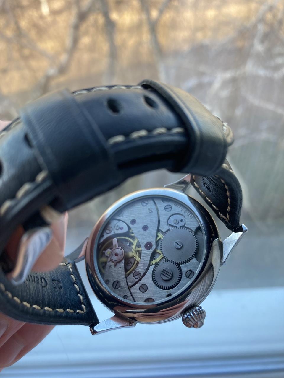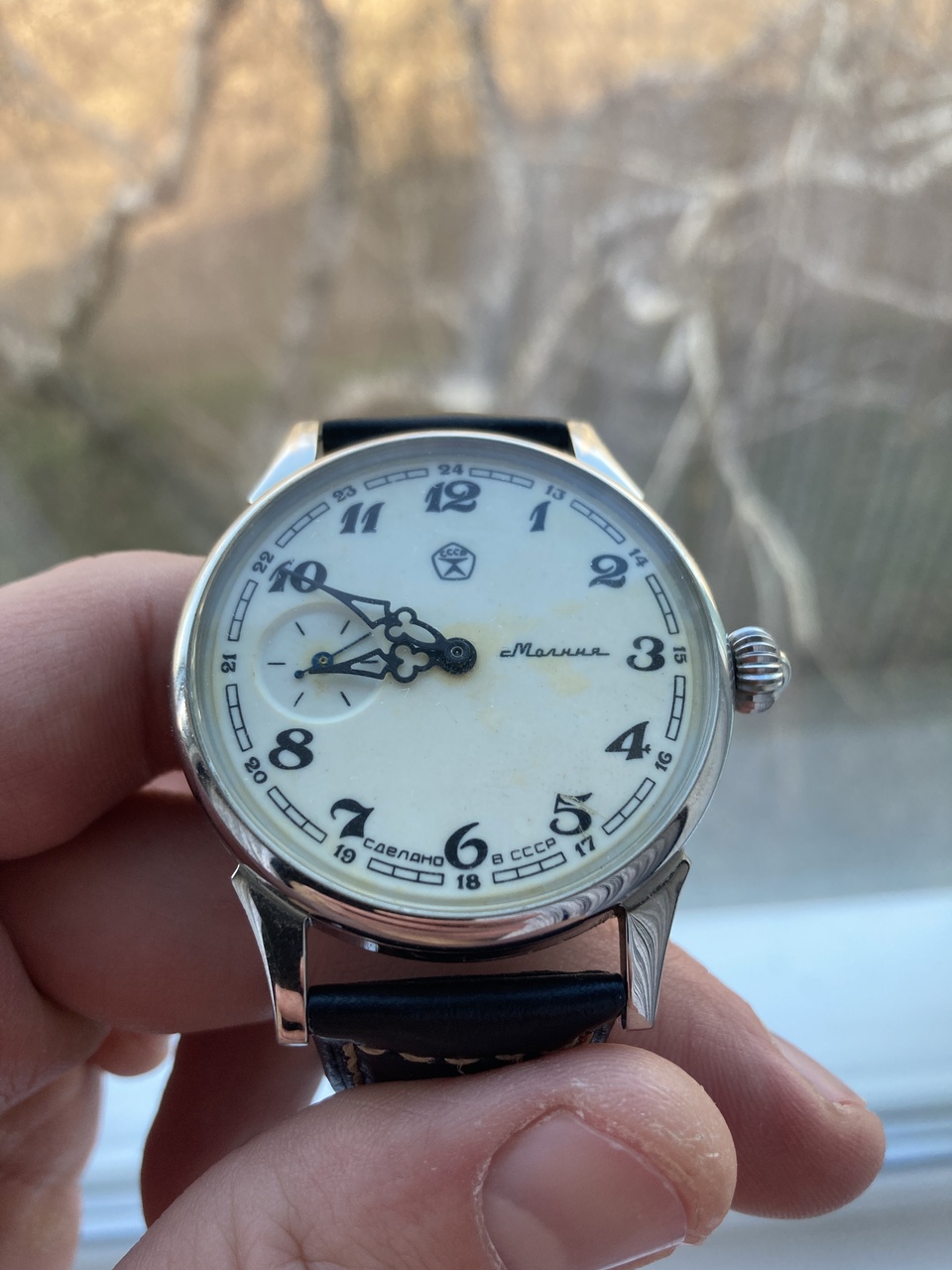 Дедушка любил носить часы, да и вообще был замечательным человеком. К сожалению при переезде все его наручные часы куда-то исчезли. Их было штук семь наверное, осталась только карманная Молния, была не на ходу. Местный мастер поставил на ход, после этого был заказан наручный корпус с ремешком и часики благополучно переехали в него. По моему вышло не плохо, пусть и редко но ношу их. Часы имеют удивительно точный ход, одну - две секунды в сутки, и очень приятно тикают.