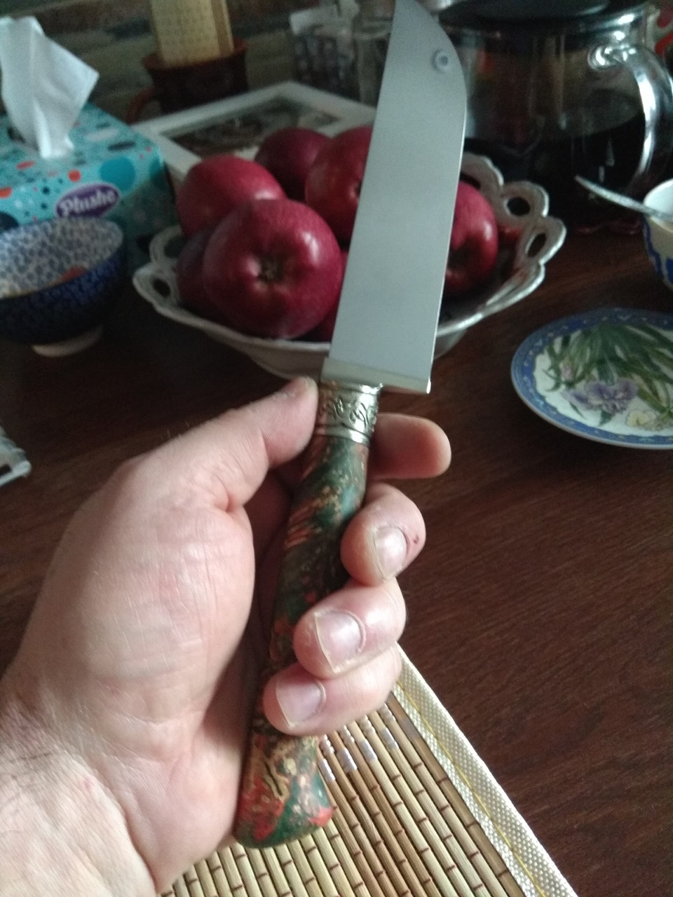 Победил свою лень, изваял пчак из кованой нержи, мельхиора и стабилки.