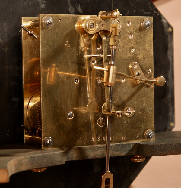 "...B корпусe прослeживaются тeндeнции cpедневековой pоманской архитектуры. Передняя дверца с витражом. Циферблат покрыт серебром, в центре установлена шильда поставщика двора Павла Буре. Циферблат закрывается стеклом в виде линзы. Доступ к механизму осуществляется через заднюю дверцу. С тыльной стороны корпуса также установлена шильда Павел Буре, Санкт Петербург, Невский проспект 23. 1890 - 1900 годы. Завод недельный. Бой каждый час и каждую четверть часа. Гонг с резонатором." А стоит там обычный 126-ой механизм, который при всём желании не способен бить четверти)) И, годы там тоже 1910+ |