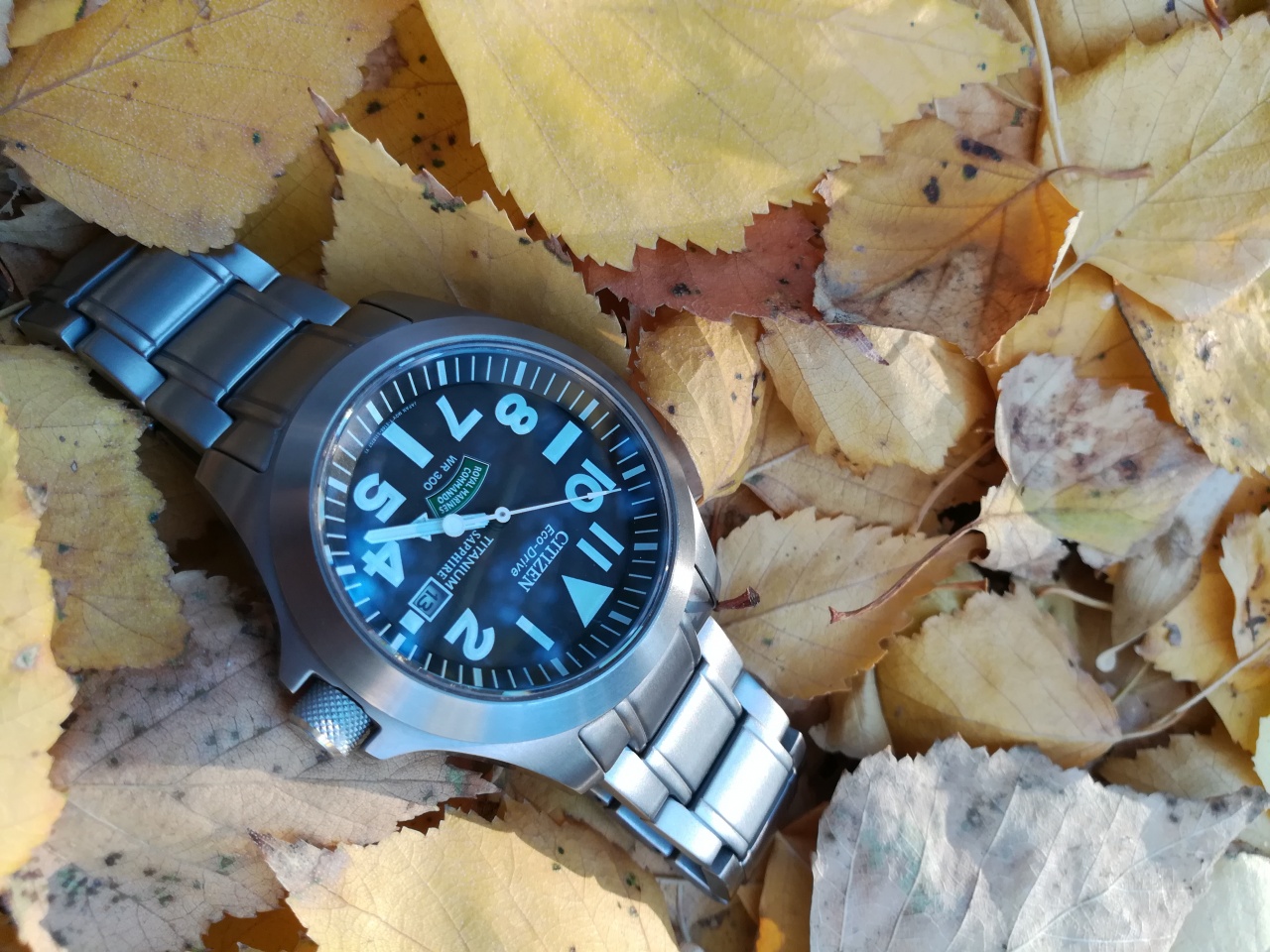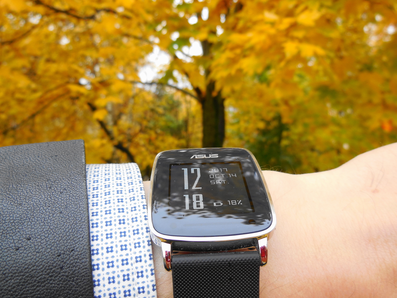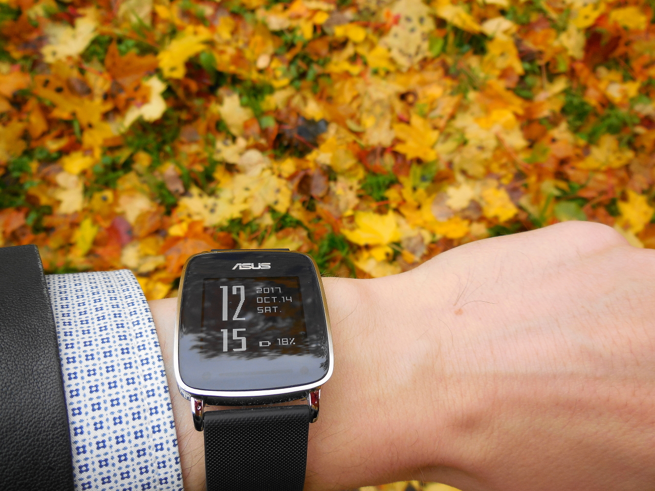 Листья жёлтые и VivoWatch с каплями дождя на дисплее.:)