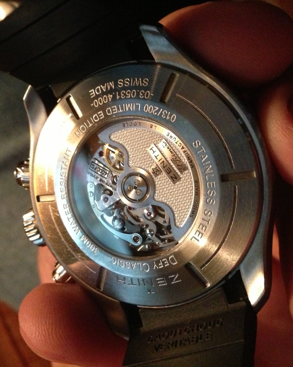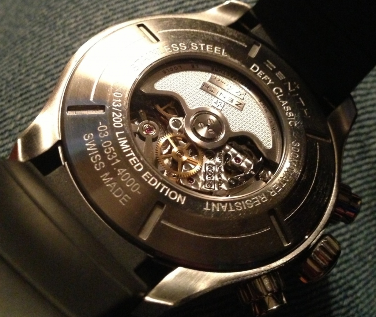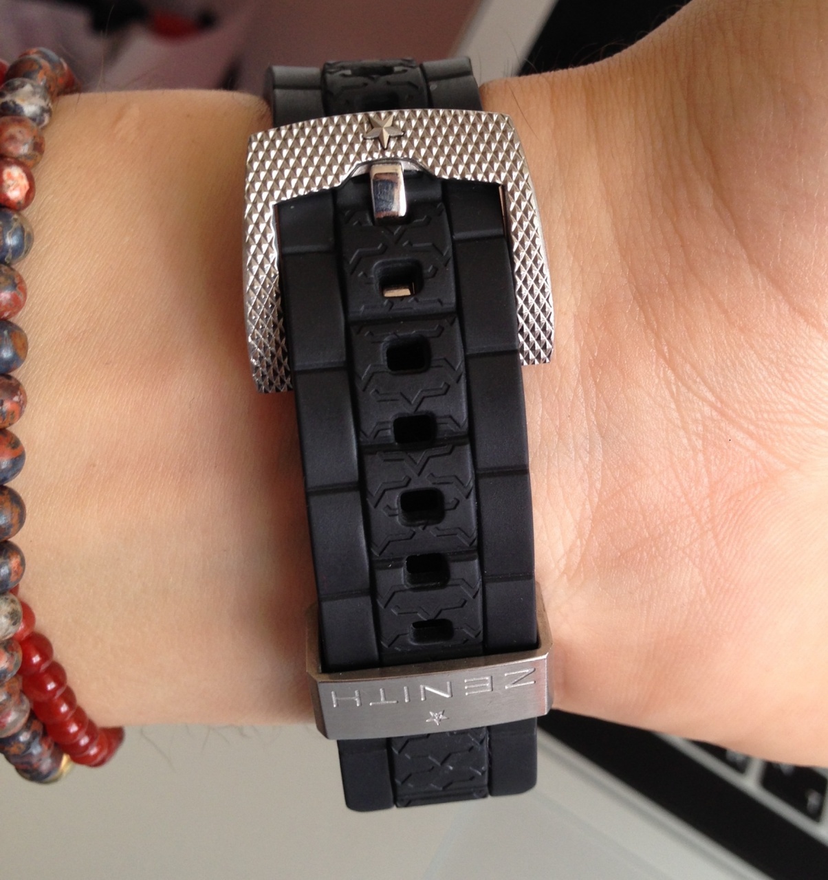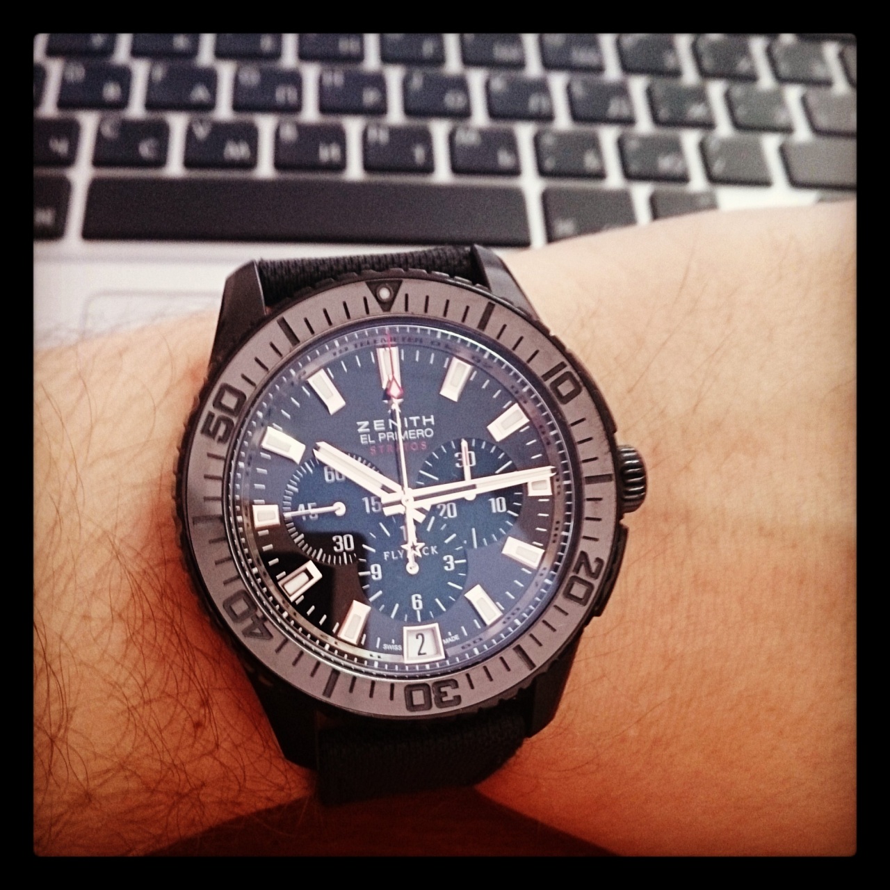 Вчера. В отличие от произведений Натафа, абсолютно не притягивает внимание людей, кто "не в теме", что мне чрезвычайно импонирует, да и немаловажно для моей работы (здравоохранение). Один пожилой продавец на примерке Longines в Чикаго, извинившись, попросил разрешения посмотреть поближе. Сказал, что это (Zenith), пожалуй, один из самых хорошо спрятанных секретов в индустрии. Мне кажется, я понял, что он хотел сказать.