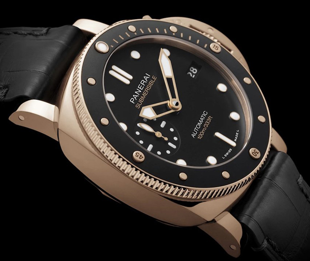 Еще в 2017 году компания Panerai выпустила Luminor Submersible 1950 3 Days Oro Rosso PAM 00684, который был первым Panerai Submersible с корпусом из розового золота диаметром 42 мм и водонепроницаемостью до 100 метров.