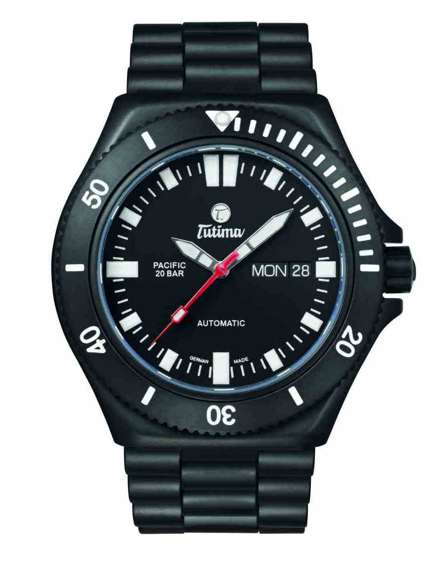 Немецкая часовая компания Tutima выпустила свою новую модель Pacific Black (Ref. 677-31), которая позиционируется, как часы для водных видов спорта.