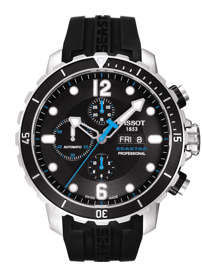 Дизайн новой лимитированной модели SeaStar 1000 Chronograph Valjoux от швейцарской часовой компании Tissot выполнен в дайверском стиле.