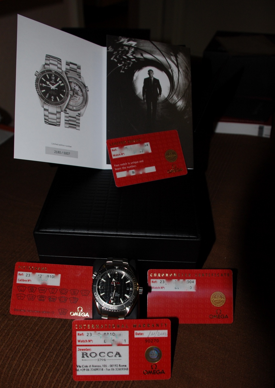 После долгих раздумий, бурного обсуждения (http://forum.watch.ru/showthread.php?t=136902) и взвешивания всех аргументов за и против было (спасибо участвовавшим в топике) принято решение о приобретении новой лимитки 2012 года - OMEGA Seamaster Planet Ocean 600M SKYFALL Limited Edition, которые составят пару моему 7-дневному португальцу IWC.