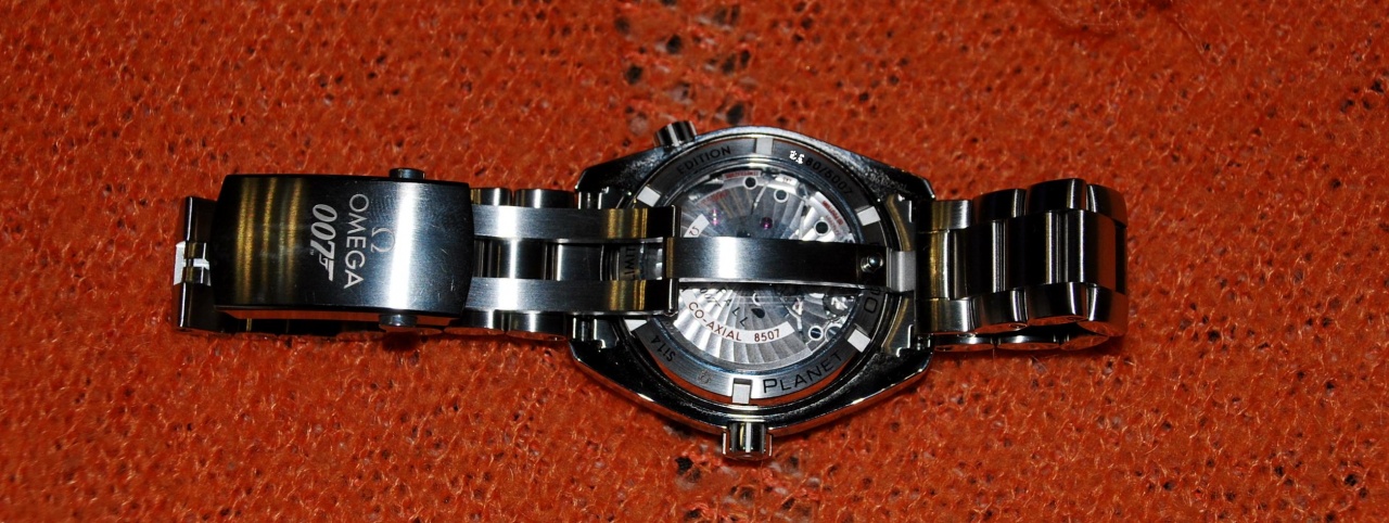Часы очень красивые, удобные, харизматичные. Начинка не отстает – калибр точен до неприличия. Часы идут четко: в 0/+1!!!, что не может не радовать любого «заболевшего». Ночью красиво светится суперлуминова на стрелках и метках, правда разница синего свечения и зеленого (на минуте и безеле) отчетливо будет видна только после того, как подержишь планету под яркой лампой секунд 10. Но побаловаться стоит – красивое разноцветное свечение доставляет. Сразу хочу отметить, что я не являюсь каким-то ярым фанов бондианы и купил часы не из-за этого. Для меня вся эта фишка с Бондом и фильмом «Координаты скайфол» является просто приятным дополнением. Часы понравились и неплохо сели. По поводу цифры 007 с пистолетиком было написано на форуме многое. Скажу одно – показал одному приятелю, который в часах ни бум бум – он даже и не заметил сначала. А после моих слов – наоборот сказал, что оригинальный ход. По мне так можно вообще не концентрировать внимание на этой метке. По мне, часы и так имеют столько плюсов, что ну хоть что-то в них должно быть решением спорным, на любителя. Еще заметил такой минус – из-за того, что стрелки в виде стрел не маленькие, а окошко с датой – напротив не отличается крупным размером, час и минута в положении +/- 3 и 15 соответственно загораживают дату полностью. Антиблик качественный, автоподзаод тихий. Часы хоть и из стали – не кажутся тяжелыми, рука не устает. Пока одни эмоции, постоянно их разглядываю, снимаю и наслаждаюсь :) Про них дана неплохая инфа на оф.сайте компании http://www.omegawatches.com/ru/gents...-ocean-skyfall http://www.omegawatches.com/ru/gents...23230422101001 И традиционный ФО: Вложение 338101 Вложение 338102 Вложение 338104 Вложение 338105 Вложение 338107 Вложение 338108 Вложение 338109 Вложение 338110 Вложение 338112 Вложение 338113 Вложение 338114 Вложение 338115 Вложение 338116 Вложение 338117 Вложение 338118 Вложение 338119 Парочка красивых, не моих фотографий: Вложение 338120 Вложение 338121 Вложение 338124 Вложение 338125 James Bond :cool: Вложение 338128 PS На этой фото видно, как уже через несколько недель эксплуатации (не раз надевал на работу – соответственно запястье соприкасалось со столом) появились легкие потертости и микроцарапины на застежке (1.) и еще при удлинении браслета для гидрокостюма в застежке происходит конкретное трение-резание металла (2.):( Вложение 338129 |