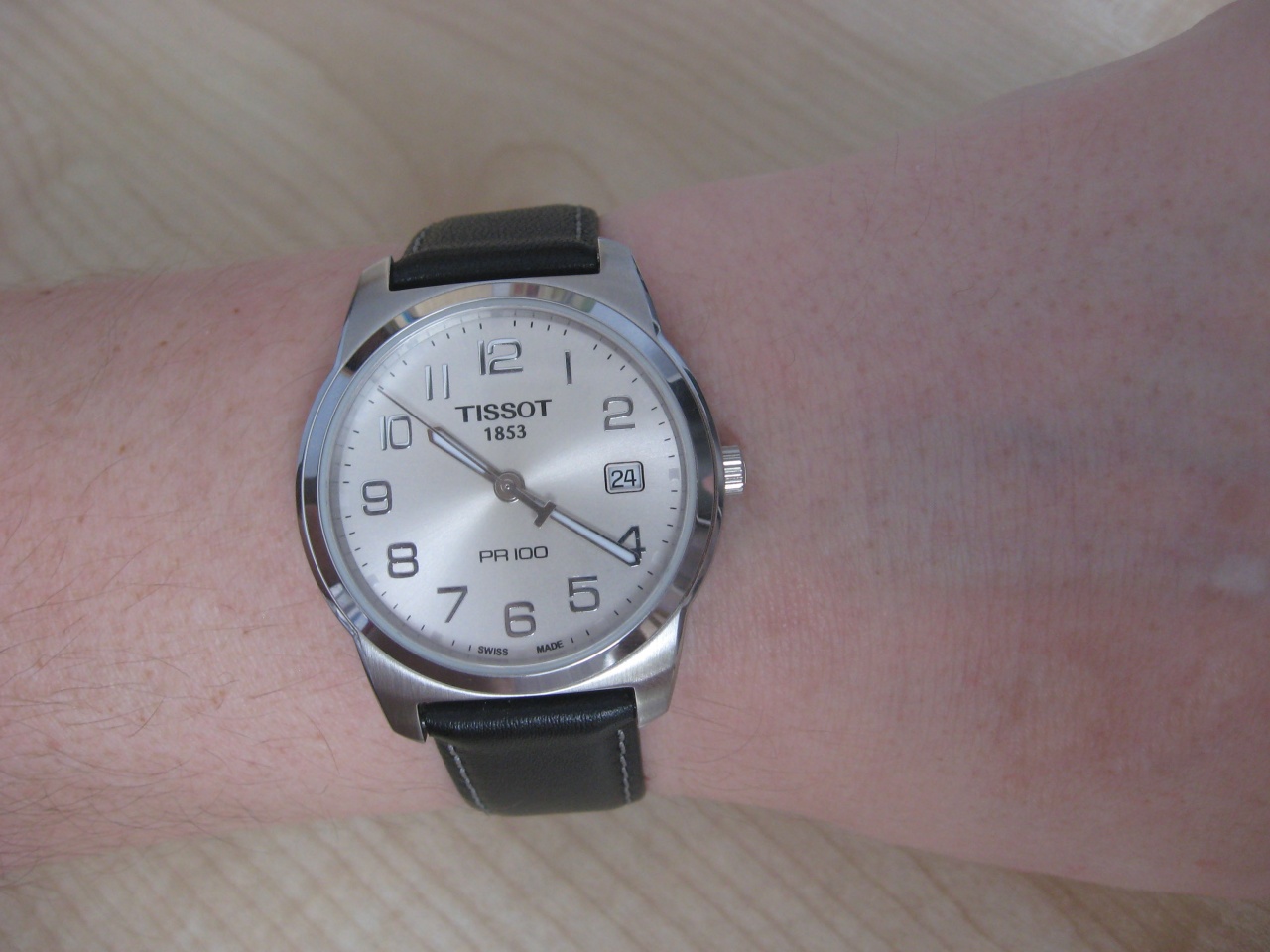 Добрый день. Решил выложить на обзор бюджетные часы Tissot T049.410.16.032.01, может кому будет полезно при выборе и покупке. Часы заказывал в Польше, обошлись в $190, это немного дешевле, чем в наших магазинах у официальных дилеров. Выглядят очень стильно, сначала их выбрал по интернету, а в живую оказались даже лучше, можно носить и под костюм и под что-нибудь повседневное. Ремешок кожаный хорошего качества, но летом будет некомфортно с ним, при долгой носке исходит специфический запах. Часы в эксплуатации с середины ноября, уже четыре месяца, за это время никаких проблем, точность хода +3с в месяц. Спасибо за внимание.