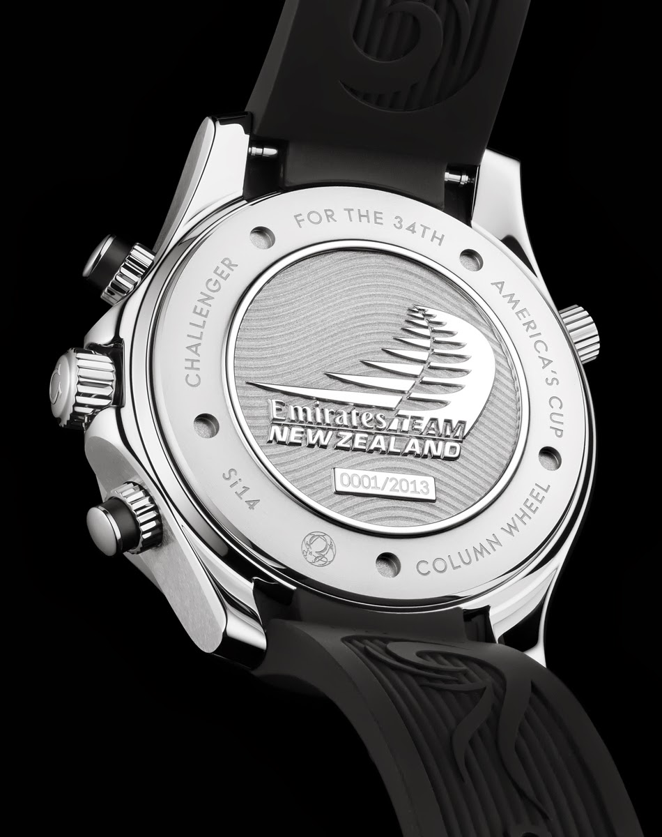 Новинка имеет круглый корпус, изготовленный из нержавеющей стали, диаметром 44 мм, водонепроницаемый до 300 метров. На торце завинчивающейся защищенной рифленой заводной головки, расположенной на 3 часах, выгравировано изображение эмблемы бренда Omega. Гелиевый клапан с рифленой завинчивающейся головкой расположен на 10 часах. Вращающийся однонаправленный дайверский безель. На завинчивающейся задней крышке корпуса выгравированы эмблема и логотип Emirates Team New Zealand. Сапфировое стекло защищает матово-черный циферблат с накладными прямоугольными и круглыми часовыми индексами и стрелками, покрытыми люминесцентным составом белого цвета. Модель оснащена швейцарским автоматическим механизмом Omega 3330 внутри, с коаксиальным спуском, колонным колесом, функциями индикации часов, минут (посредством соответствующих центральных стрелок), секунд (на малом боковом циферблате, расположенном на 9 часах), даты (посредством соответствующего цифрового указателя в апертуре, расположенной на 6 часах), а также с хронографом (центральная секундная стрелка красного цвета, 30-минутный счетчик, расположенный на 3 часах и 12-часовый счетчик, расположенный на 6 часах). Дополнительная пятиминутная разметка на 30-минутном счетчике позволяет использовать его в качестве регатного таймера обратного отсчета. Поставляется на текстурированном черном каучуковом ремешке. Лимитированный выпуск 2013 экземпляров. Цена модели составит около $ 6800. В продажу она поступит на следующей неделе. Вложение 471721Вложение 471722 Вложение 471723 Вложение 471724 Источник: http://www.watchesbysjx.com/2013/06/...ited.html#more |