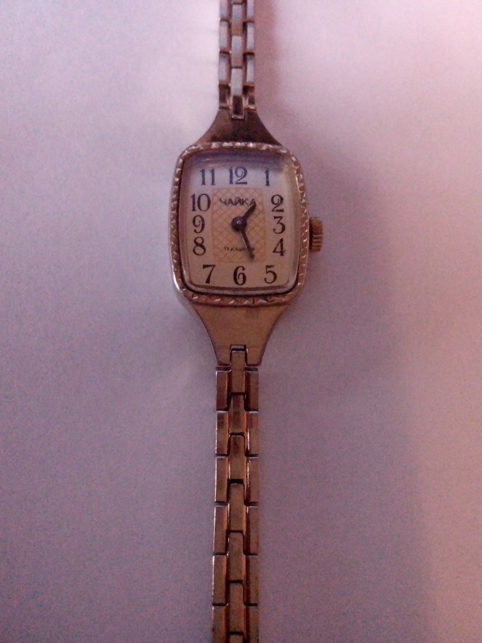 Женские часы Чайка 17 камней, клейма пробы не нашел, замочка на браслете нету, на задней крышке самих часов цифры. Механизм часов рабочий. Знаю еще что они примерно 1970 года. Что это золото или нет? Что за модель, на сколько ценная? Вложение 772168 Вложение 772169 Вложение 772170 |