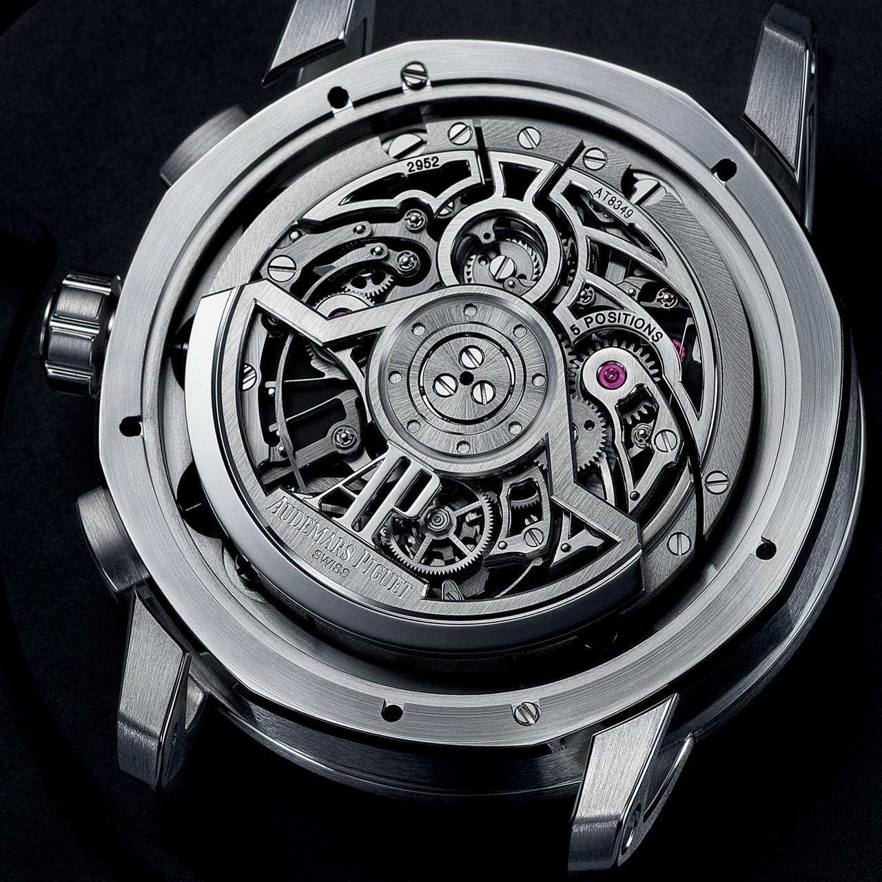 Audemars Piguet расширяют свою неординарную коллекцию Code 11.59, выпуская в её рамках новую модель Flying Tourbillon Chronograph, усложненную парящим турбийоном и функцией хронографа. Новые Code 11.59 Flying Tourbillon Chronograph сохраняют большинство визуальных элементов других моделей, уже существующих в этой коллекции, начиная с великолепно выполненного 41-миллиметрового корпуса. Изготовленный из 18-каратного белого золота, он имеет сложную геометрию, с восьмиугольным центральным контейнером (отсылка к фирменному стилю Royal Oak), завинчивающейся задней крышкой и модулем с безелем и полыми ременными дужками - единой деталью, которая накрывает корпус сверху.