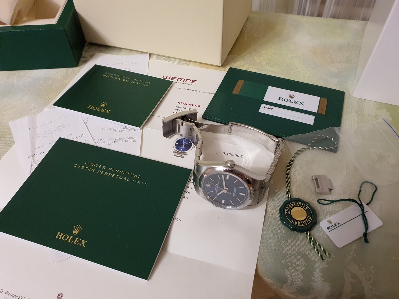 Пол: мужские Год покупки: 2018 БУ часы, состояние: AA (отличное) http://forum.watch.ru/images/market-question.png Полировка: нет Цена: 4 970 EUR (продажа) Коробка: есть Документы: есть В продаже оригинальные швейцарские мужские наручные часы Rolex Oyster Perpetual ref: 114300 с синим цветом циферблата. Состояние отличное, есть незначительные следы от нормальной носки, практически невидимые взору. Часы куплены в Германии у официального дилера, все штампы, чеки, документы, бирки, коробки - присутствуют. Международная гарантия до лета 2023 года. https://pixs.ru/images/2020/09/27/Sc...g-Internet.jpg Часы в Москве, готов к осмотру только в серьезной мастерской. Отвечу на Ваши вопросы в личных сообщениях. Вложение 3057222 Вложение 3057215 Вложение 3057216 Вложение 3057217 Вложение 3057218 Вложение 3057219 Вложение 3057220 Вложение 3057221 |