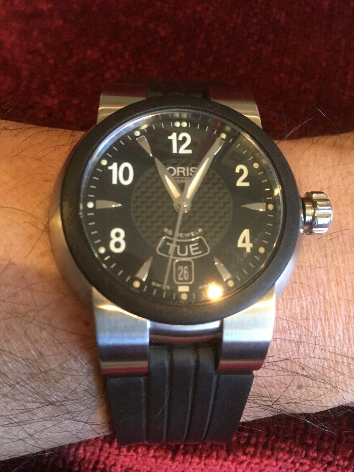 https://cdn.watchcharts.com/listings...d-44cf8920d24b P.S. Выше уже ответили. Точно Oris. Такая модель не попадалась на глаза. Но вот ушки и текстура каучукового ремешка сразу указали на Oris. |