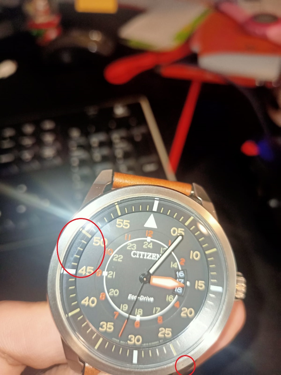При детальном рассмотрении на часах обнаружилась куча царапин, (даже на стекле - предпоследнее фото), что явно не соответствует "идеальному состоянию", тем более ААА.