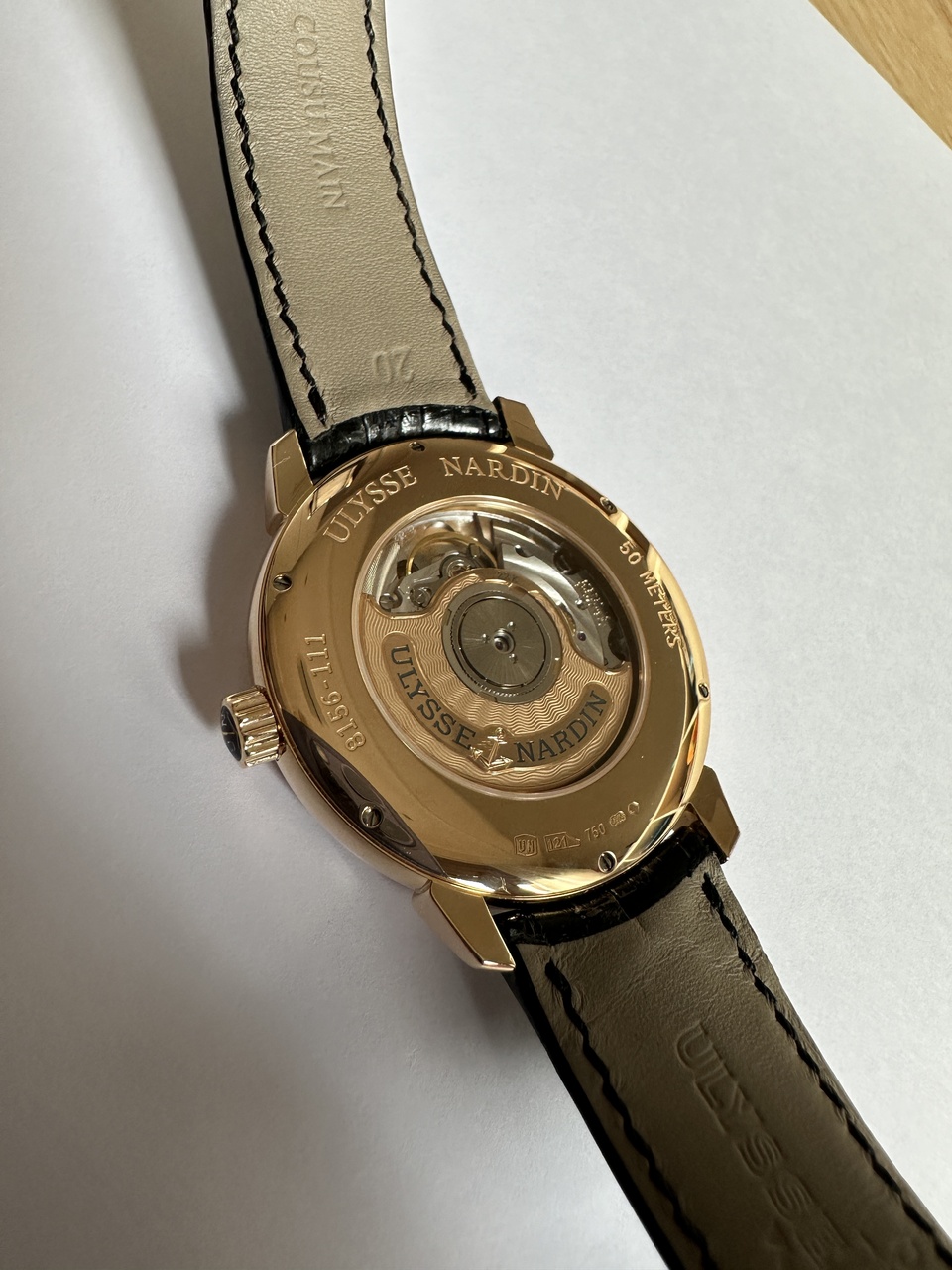Пол: мужские Год покупки: 2013 БУ часы, состояние: AAA (идеальное) http://forum.watch.ru/images/market-question.png Полировка: да, делалась Цена: 6 400 USD (продажа) Коробка: есть Документы: нет Продаются Ulysse Nardin San Marco Classico 8156-111-2/92 Часы в идеальном состоянии. Одевались считанное количество раз (видно по состоянию оригинального ремешка). Сделано полное техническое обслуживание с лёгкой освежающей полировкой (в сентябре 24, гарантия до сентября 25). Технические характеристики: Материал корпуса: Золото; Стекло: сапфир; Размер корпуса: 40 мм; Тип механизма: Механический с автоподзаводом; Калибр: UN-815; Запас хода: 42 часов, Функции: часы, минуты, секунды, дата; Водонепроницаемость: 50 м; Браслет: Кожа аллигатора; Цвет ремешка: Черный. Ref. 8156-111-2/92 Вложение 3758554 Вложение 3758555 Вложение 3758556 Вложение 3758557 Вложение 3758558 Вложение 3758559 Вложение 3758560 Вложение 3758561 Вложение 3758562 Вложение 3758563 |