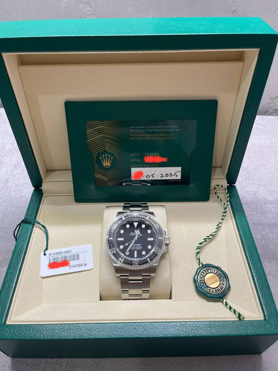 Пол: мужские Год покупки: 2025 Новые часы, состояние: N- (новые) http://forum.watch.ru/images/market-question.png Цена: 1 100 000 руб. (продажа) Коробка: есть Документы: есть Абсолютно новые (май 2025) со всеми документами. Тех. характеристики Rolex Submariner: - Артикул: 124060-0001 - Диаметр: 41мм - Стекло: Сапфир - Корпус: Oystersteel - Браслет: Oystersteel с функцией расширения - Калибр: Мануфактурный 3230 (хронометр, запас хода 70 часов) - Водозашита: 300м, завинчивающаяся заводная головка - Гарантия: от производителя 5 лет с даты покупки Вложение 3895761 Вложение 3895762 Вложение 3895763 Вложение 3895764 Вложение 3895765 |