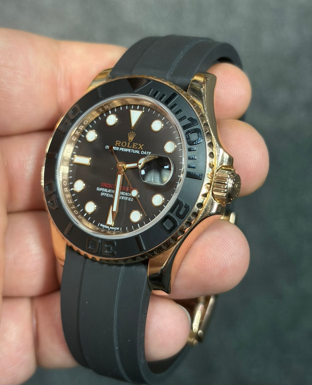 Вложение 3926245Вложение 3926246Вложение 3926259Вложение 3926263 ЦЕНА: 24 999$ Бренд: Rolex Модель: Yacht-Master Референс: 116655 Состояние: Like New Комплектация: Часы с оригинальной коробкой и документами Механизм: Механика с автоподзаводом Материал корпуса: Розовое золото Размер корпуса: 40,00 мм Толщина корпуса: 12,00 мм Функции: Дата, Часы, Минуты, Центральная секундная стрелка Калибр: Rolex 3235 Запас хода: 48 часов Безел: Вращающийся в двух направлениях с 60-минутной градуированной шкалой и черным матовым керамическим диском, с полированными цифрами и делениями Задняя крышка: Глухая Cтекло: Сапфировое стекло Ремень: Каучук Застежка: Oysterlock с раскладывающейся пряжкой, система удлинения Rolex Glidelock Водонепроницаемость: 100 м Циферблат: «Matt Black», стрелки «Mersedes». Индикация высокой четкости Chromalight с помощью люминесцентного вещества длительного свечения P.S. Часы в превосходном первозданном состоянии. Были куплены в 2019г в бутике MERCURY. Это позволяет в наше время с ними спокойно путешествовать и проходить таможню. ОГРОМНЫЙ ПЛЮС. Часы не полировались, не вскрывались, ремешок родной, носились мало, были одними из в коллекции. Что можно найти лучше в этом бюджете 40мм??? НЕ ИМЕЕТ КОНКУРЕНТОВ |