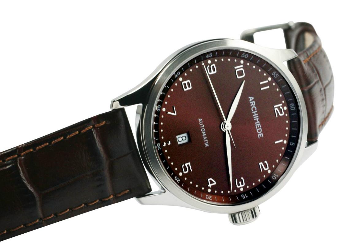 Немецкая часовая компания Archimede представила новую версию своей модели Klassik 39, отличающуюся, как это и следует из ее названия, от предыдущей версии 39-миллиметровым диаметром корпуса (ранее он составлял 42 мм).