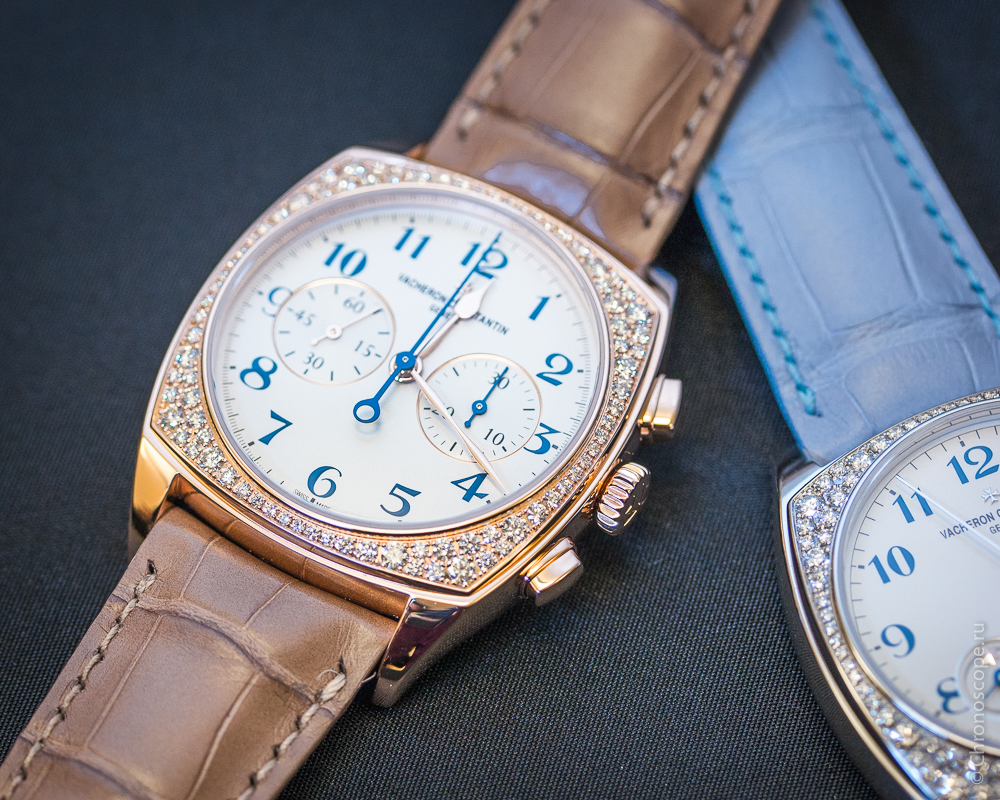 Если часы Vacheron Constantin входят в число семейных ценностей, в комплект к предыдущему хронографу стоит приобрести и женскую модель. Она меньше размером, а ее золотой корпус декорирован 84 бриллиантами. Серия ограничена 260 экземплярами.