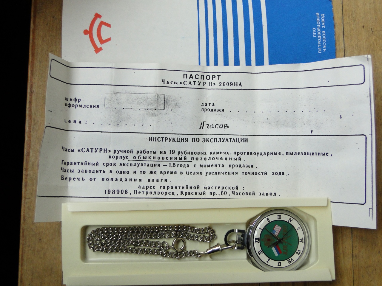 И вот прошло много лет, и попались мне такие же сувенирные, но карманные. Не ношенные, но нерабочие, со сломанным балансом. С документами.
