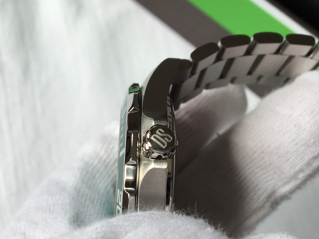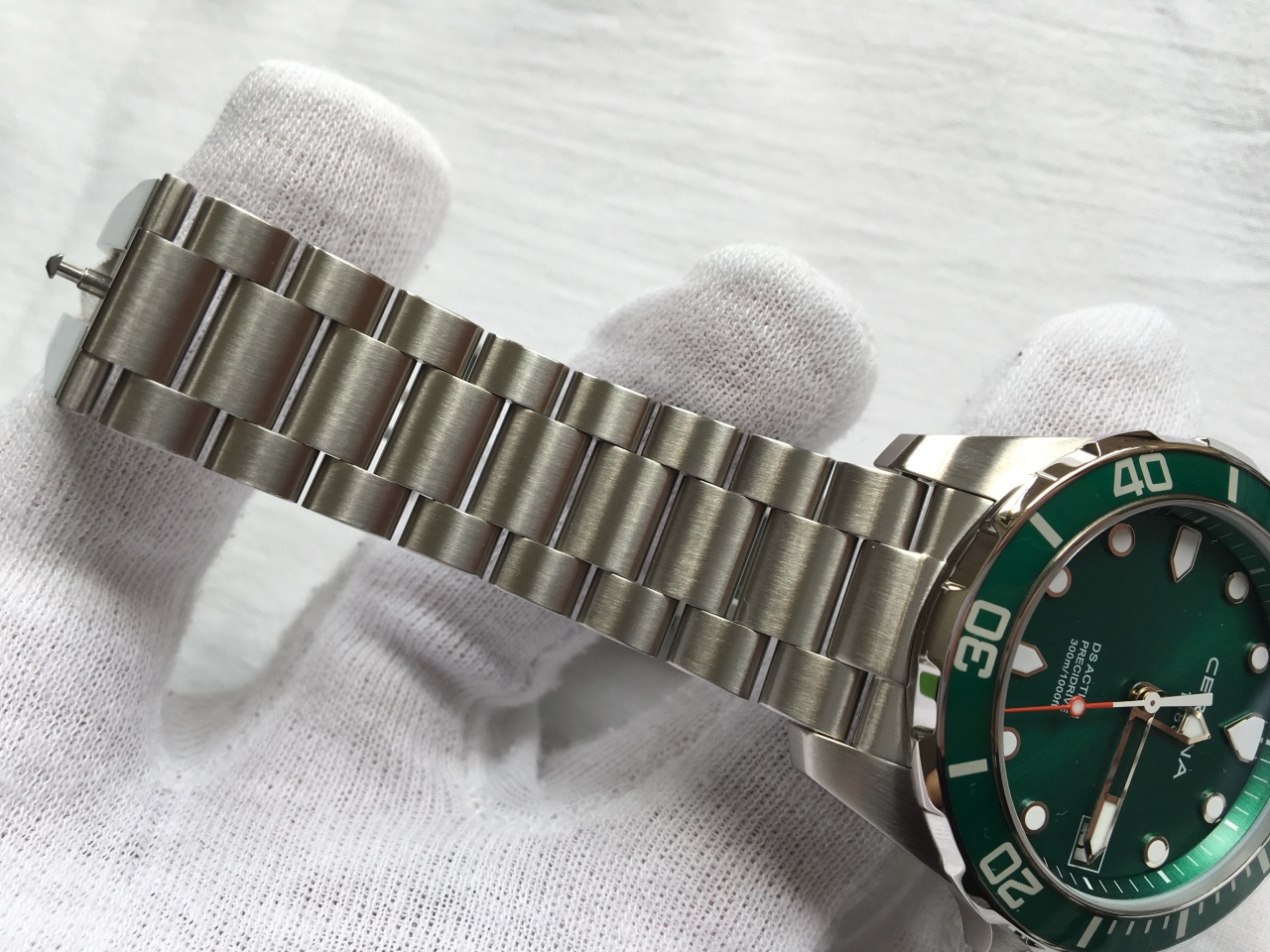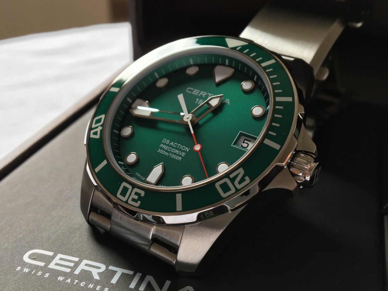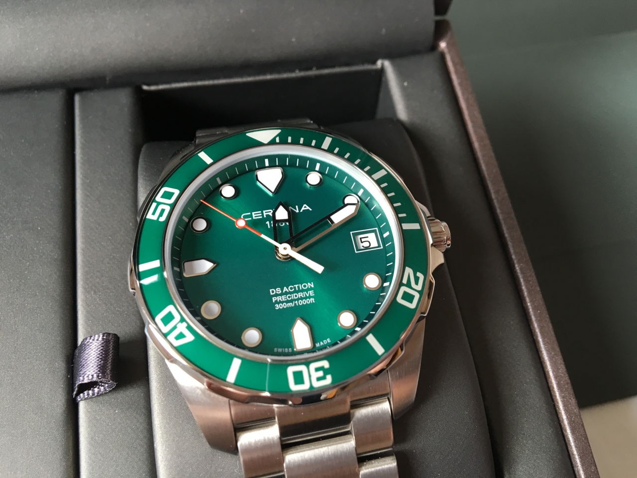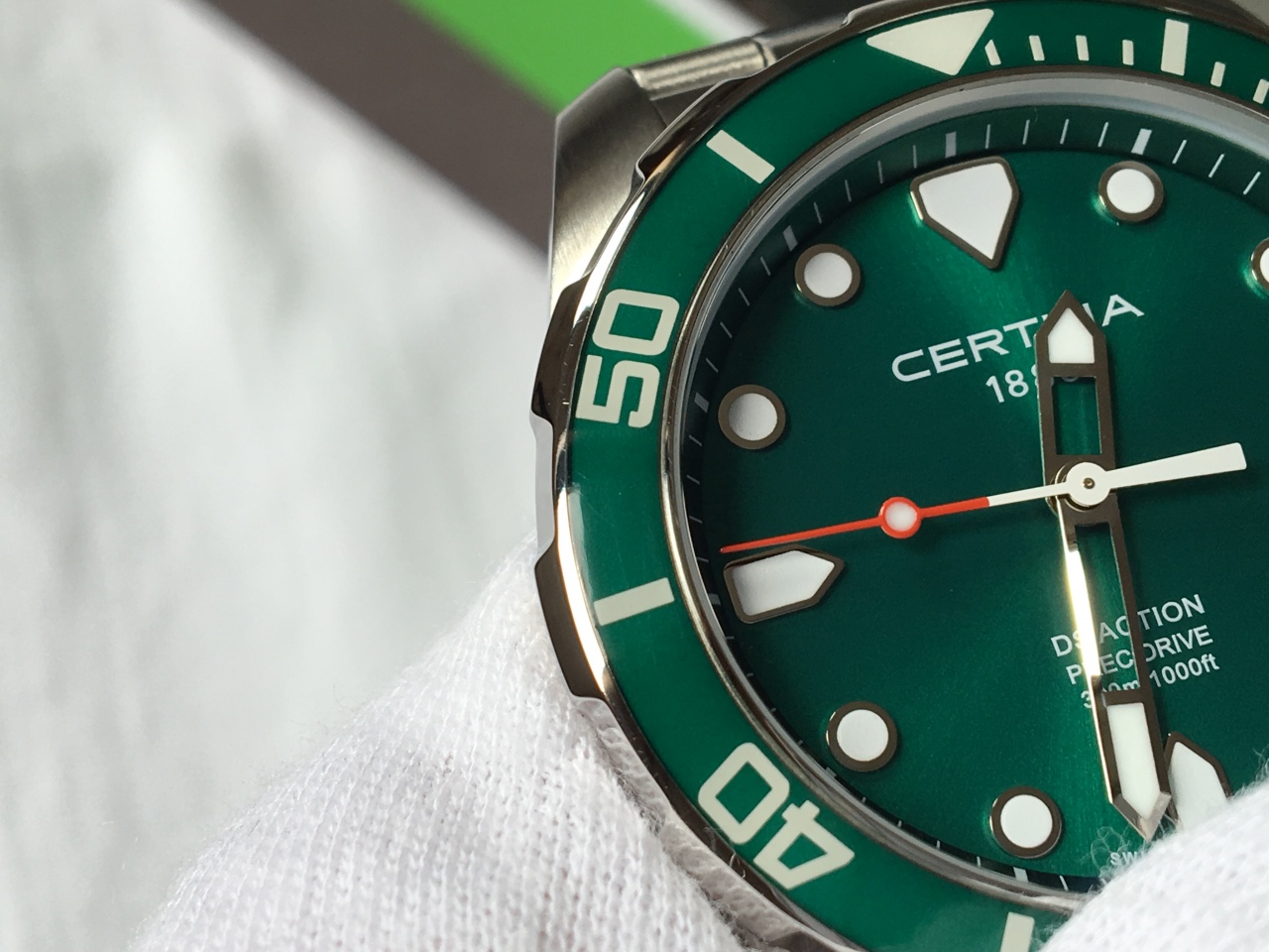 Циферблат: Зелёный, Сатинированный, Стрелки и индексы с покрытием Super-LumiNova®;