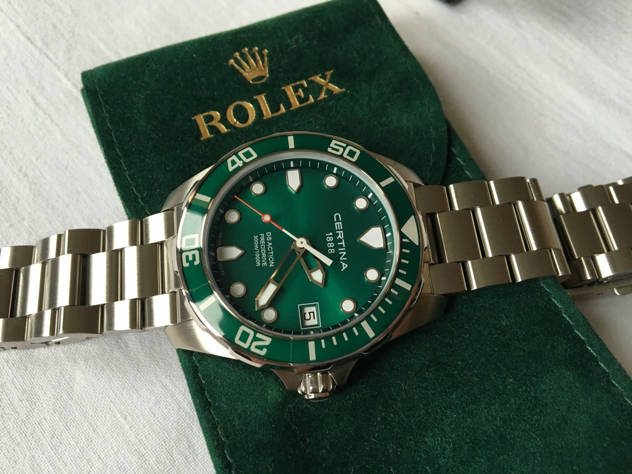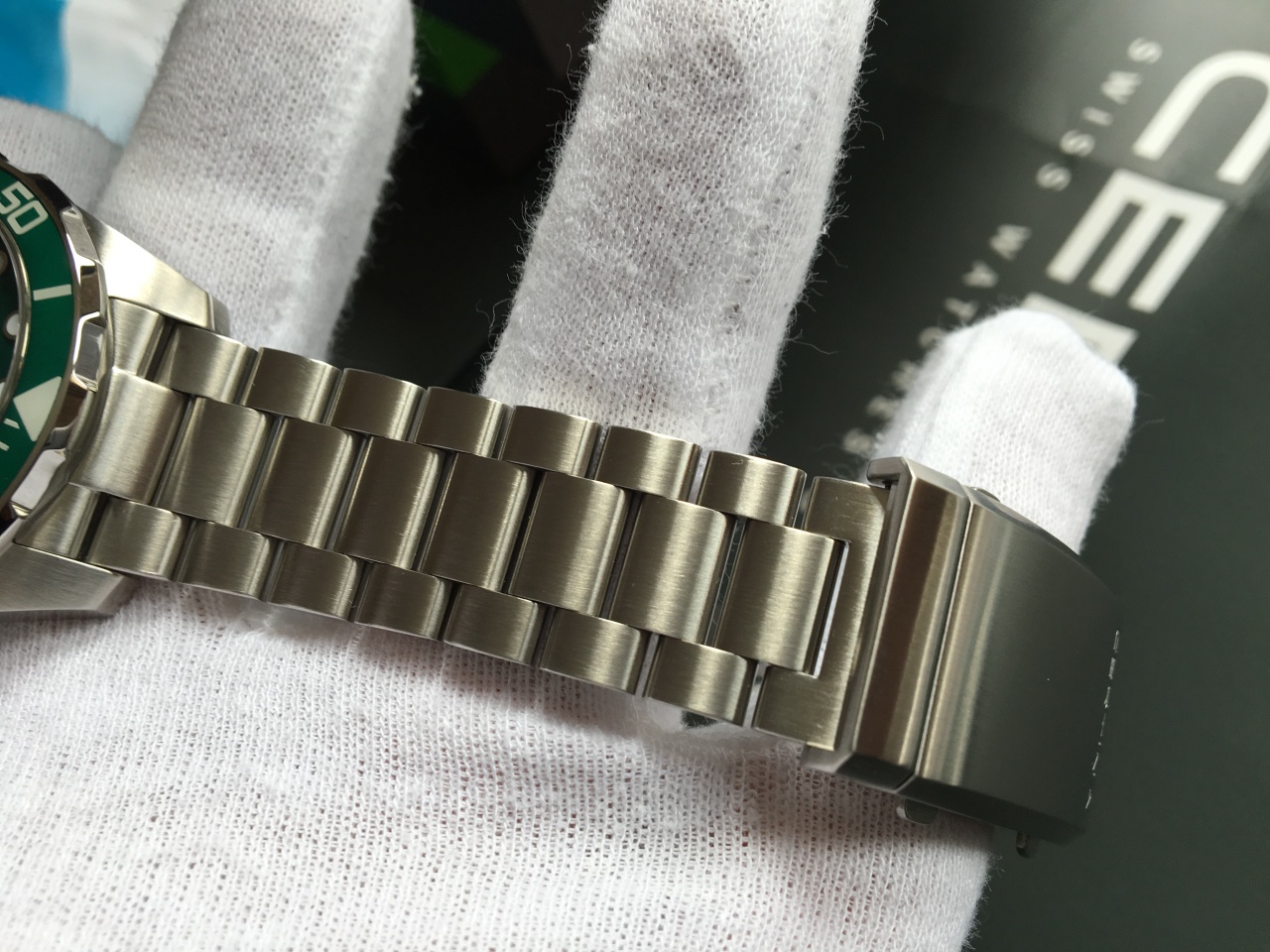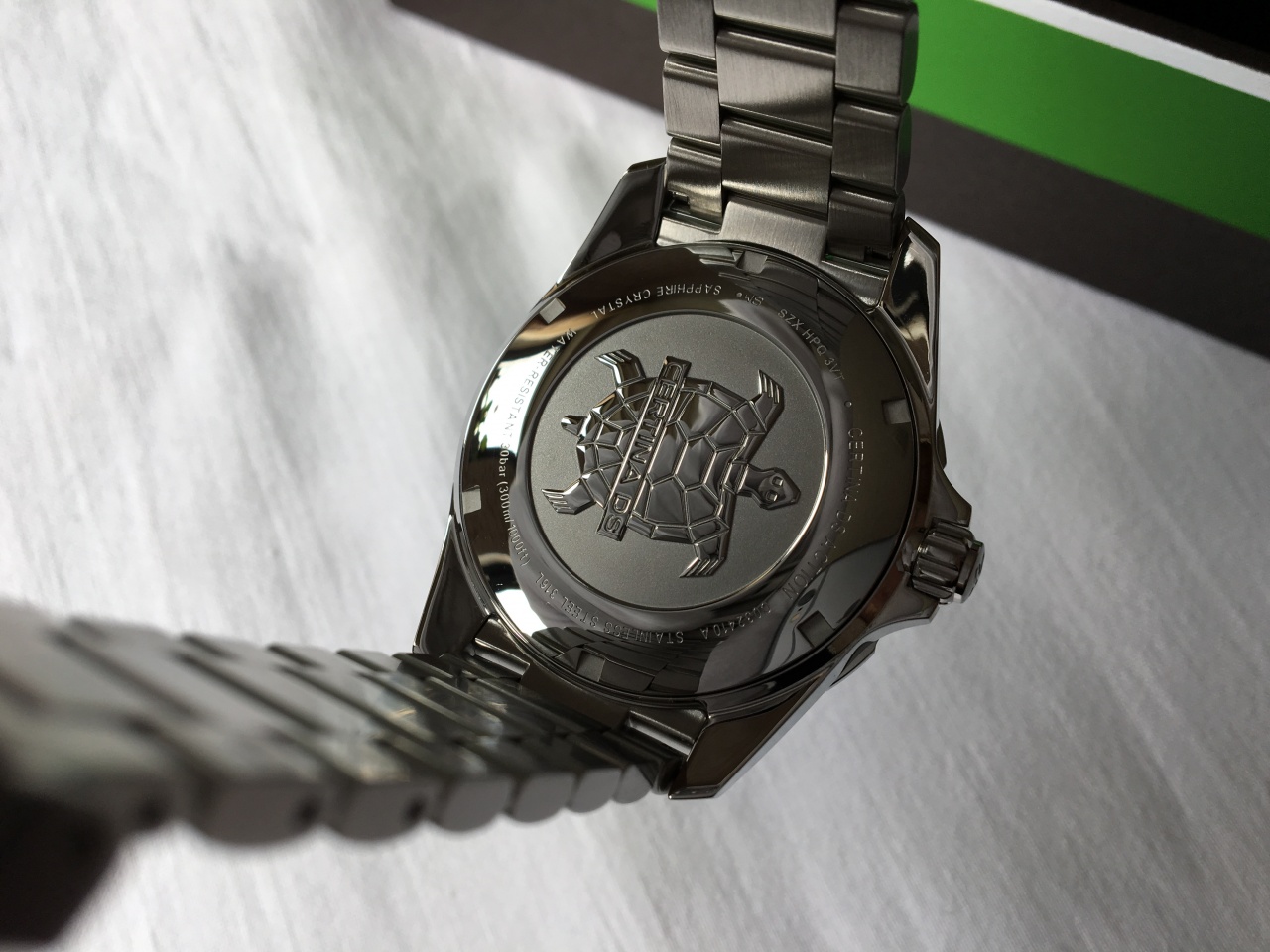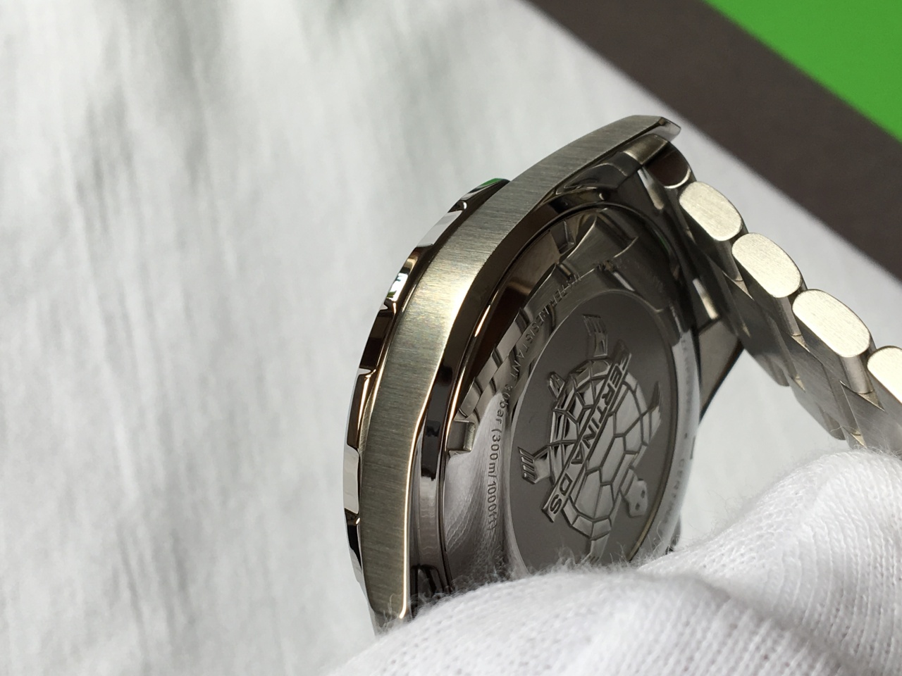 Хронографы мне были не интересны (вполне достаточен Breitling Colt Хронограф), а вот мимо разнообразия трехстрелочников я не смог пройти мимо, и обратил внимание на модель из линейки Aqua, с зеленым цифером -