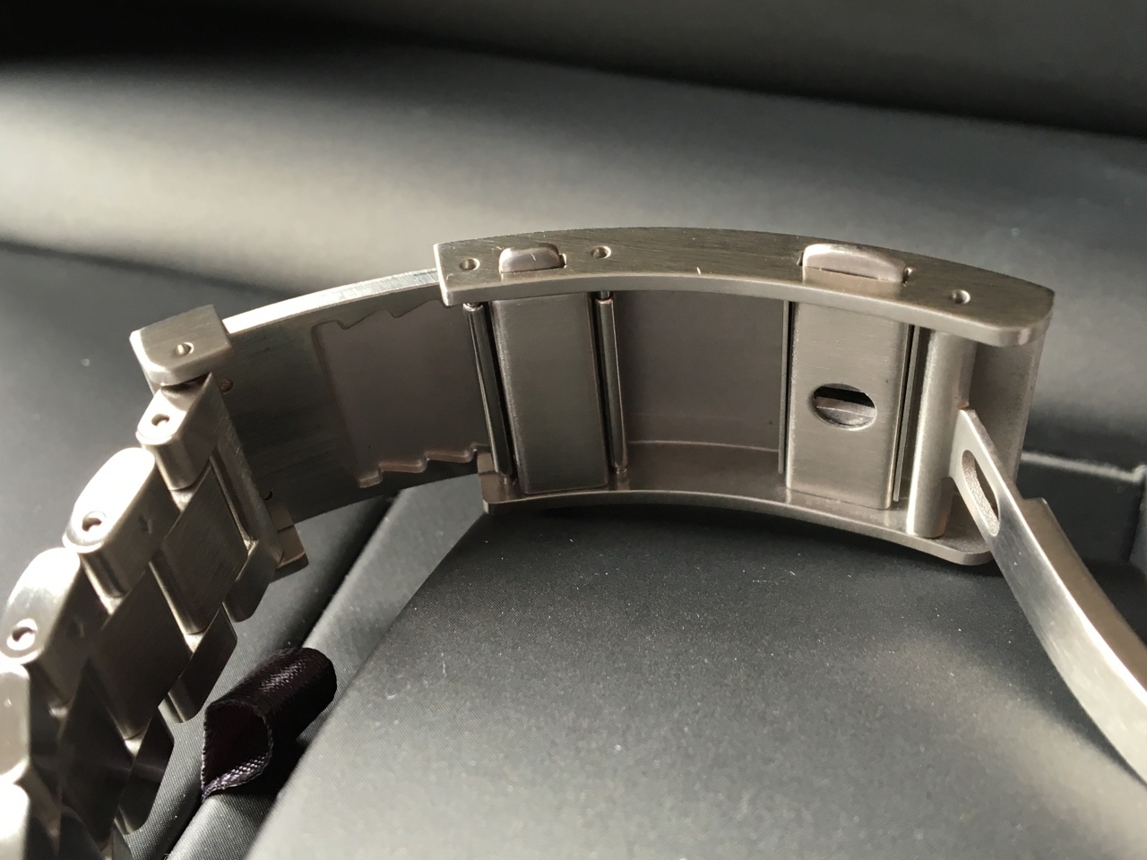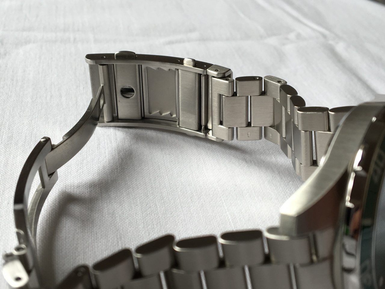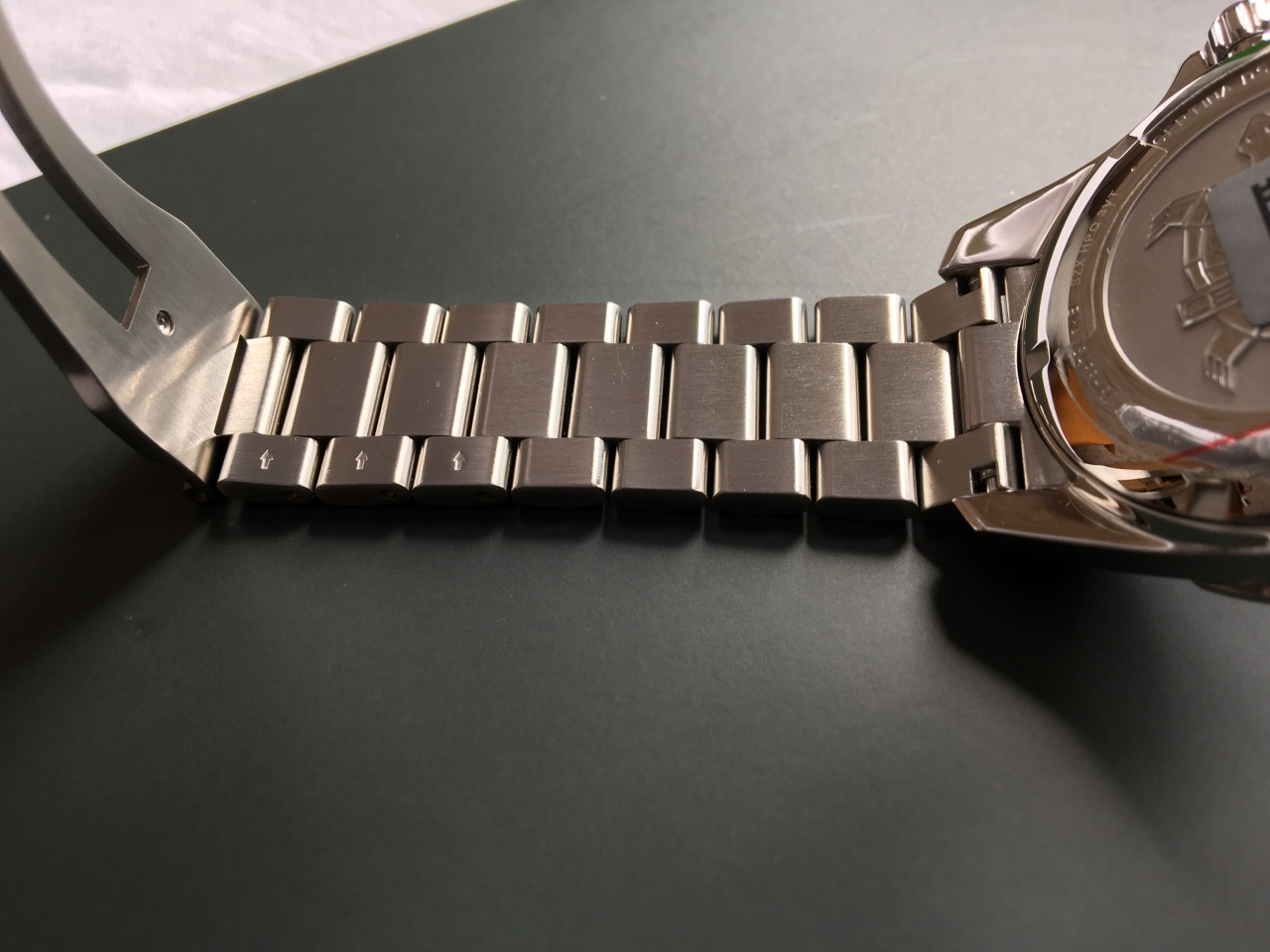 Браслет модели на крупную руку, мне пришлось для себя снять 4 звена (по два с каждой стороны).