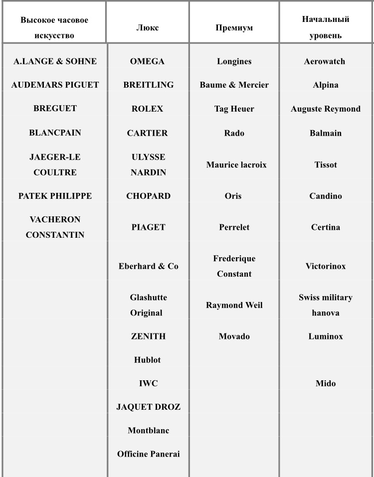 Как по мне, Tag Heuer и Longines пусть и с небольшой натяжкой, но можно было бы отнести к тем собратьям, что в столбике "Люкс"? Или ни Longines, ни Tag Heuer не дотягивают до публики во второй графе?