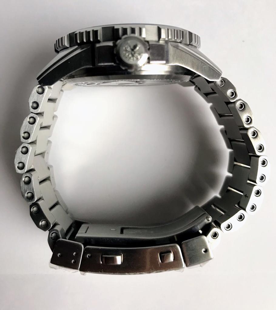 Вашему вниманию удивительные часы, включающие в себя отличный швейцарский механизм, лучший люм, прекрасную водозащиту, гелиевый клапан, сапфировое стекло и безель, коронный браслет, красивые гравировки на заводной головке и задней крышке.