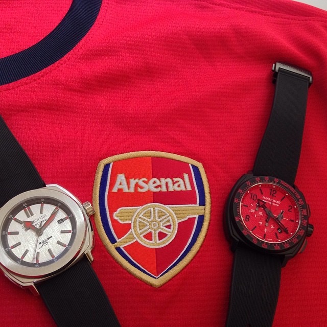 Серый глянцевый циферблат с отпечатанным логотипом «канониров»