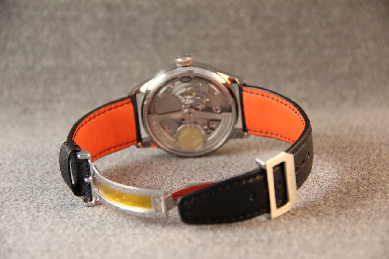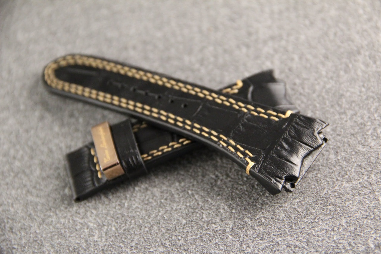 Ремешок для часов Jacob & Co. Верх ремешка сделан из кожи аллигатора. Подкладка ремешка из кожи теленка Zermatt. Кожа произведена на заводе Haas во Франции. Ремешок прошит вручную.
