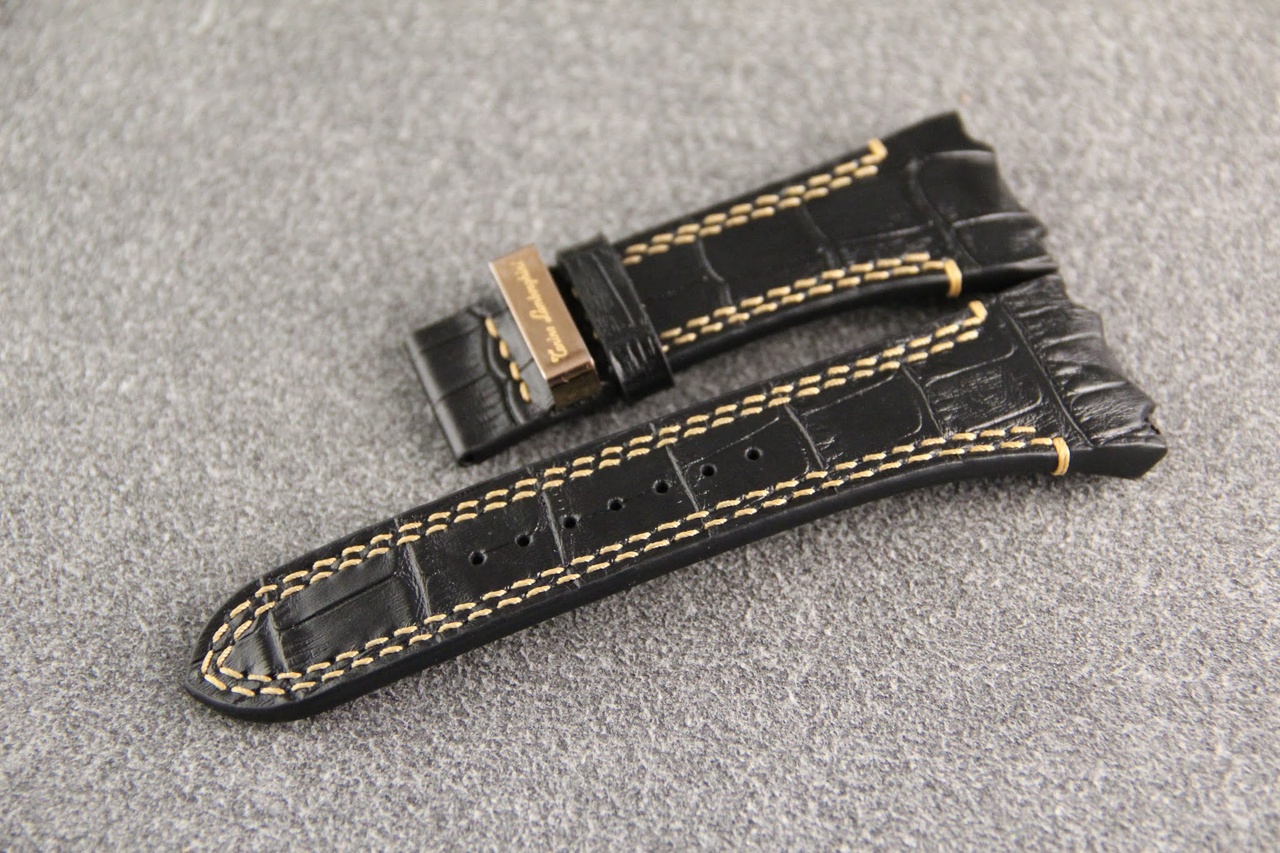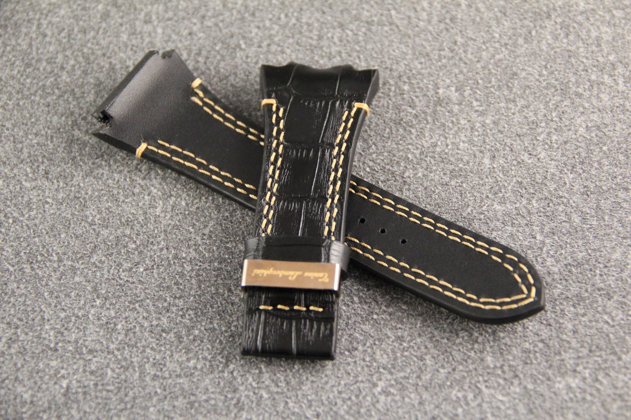 Ремешок для часов Tonino Lamborghin GT2. Верх ремешка сделан из кожи теленка с принтом кожи аллигатора. Подкладка ремешка из кожи теленка. Ремешок прошит вручную.