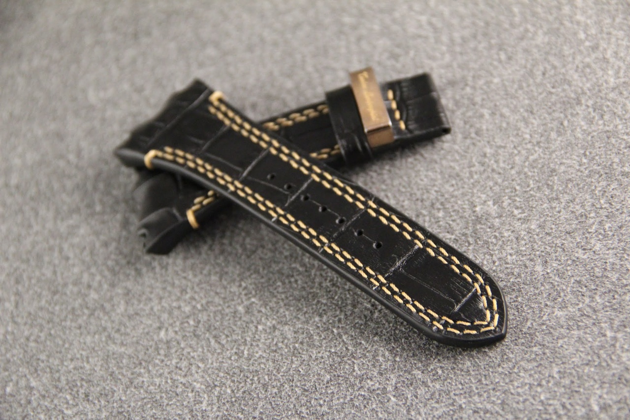 Ремешок для часов IWC Portugieser. Верх ремешка сделан из кожи козы. Подкладка ремешка из кожи теленка. Ремешок прошит вручную.