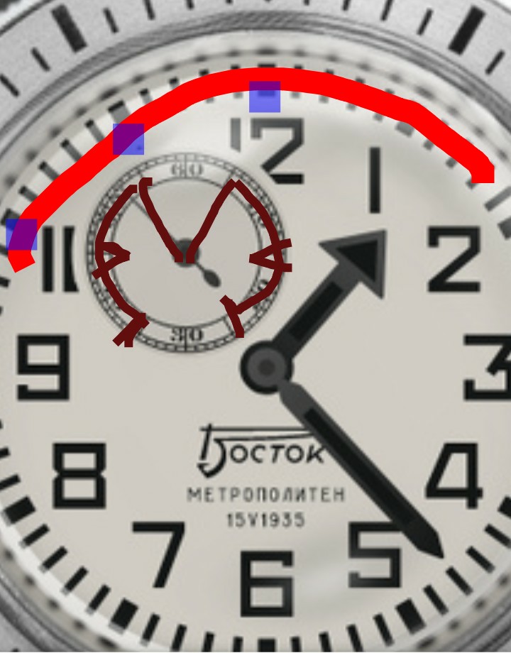 Мб даже другой шрифт часовых индексов, чтобы на 10, 11 и 12 часов как-то пересадку на кольце показать. Цвет дорожки только для примера, разметку как на первом эскизе я на телефоне не смогу изобразить.