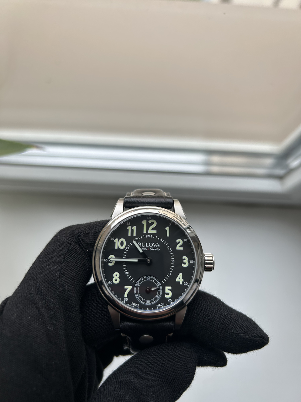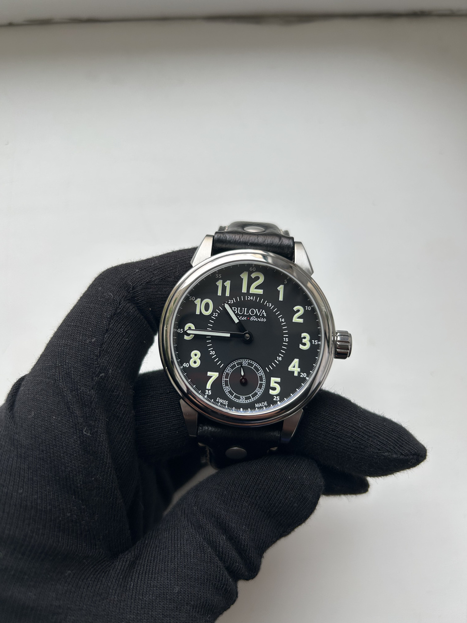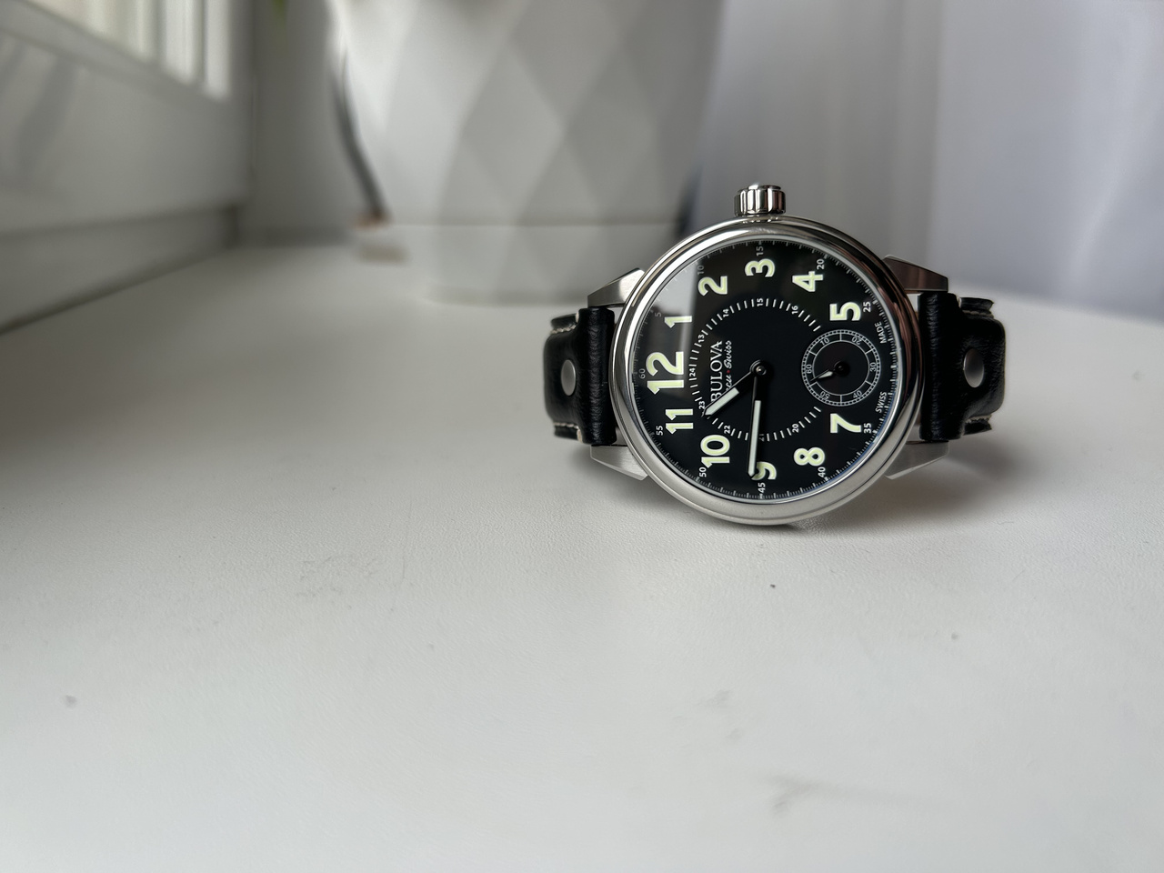 В этих часах гармонично абсолютно все: выверенный до мелочей дизайн, черный цифер с арабскими цифрами и люмом на стрелках и цифрах,