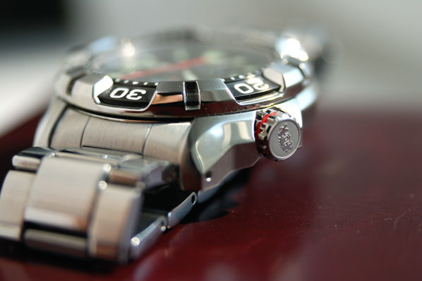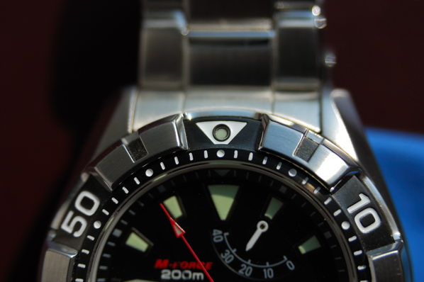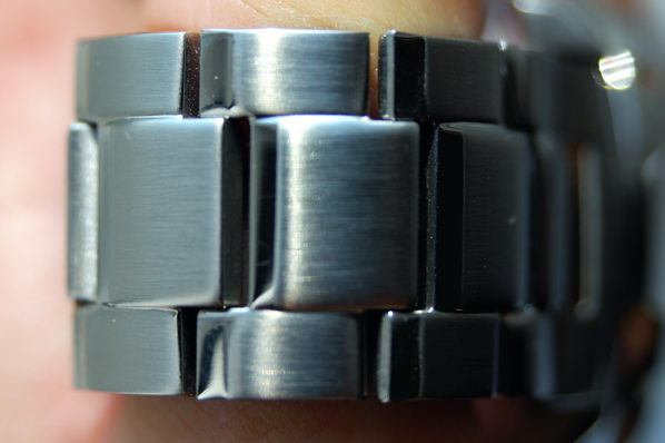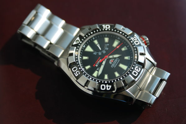 Отличнейшая вещь. Ручной завод в дополнение к автомату, стоп-секунда. Очень красивый, «играющий» на солнце корпус и браслет, безель, метки и стрелки. Ночью светит очень красиво (хотя метки тоньше и все менее ярко чем на вышеупомянутом Неомонстре). Каждый линк браслета внизу неполирован – очень красиво (браслет широкий – 22 мм). Заводная головка – умереть не встать насколько красивая!
